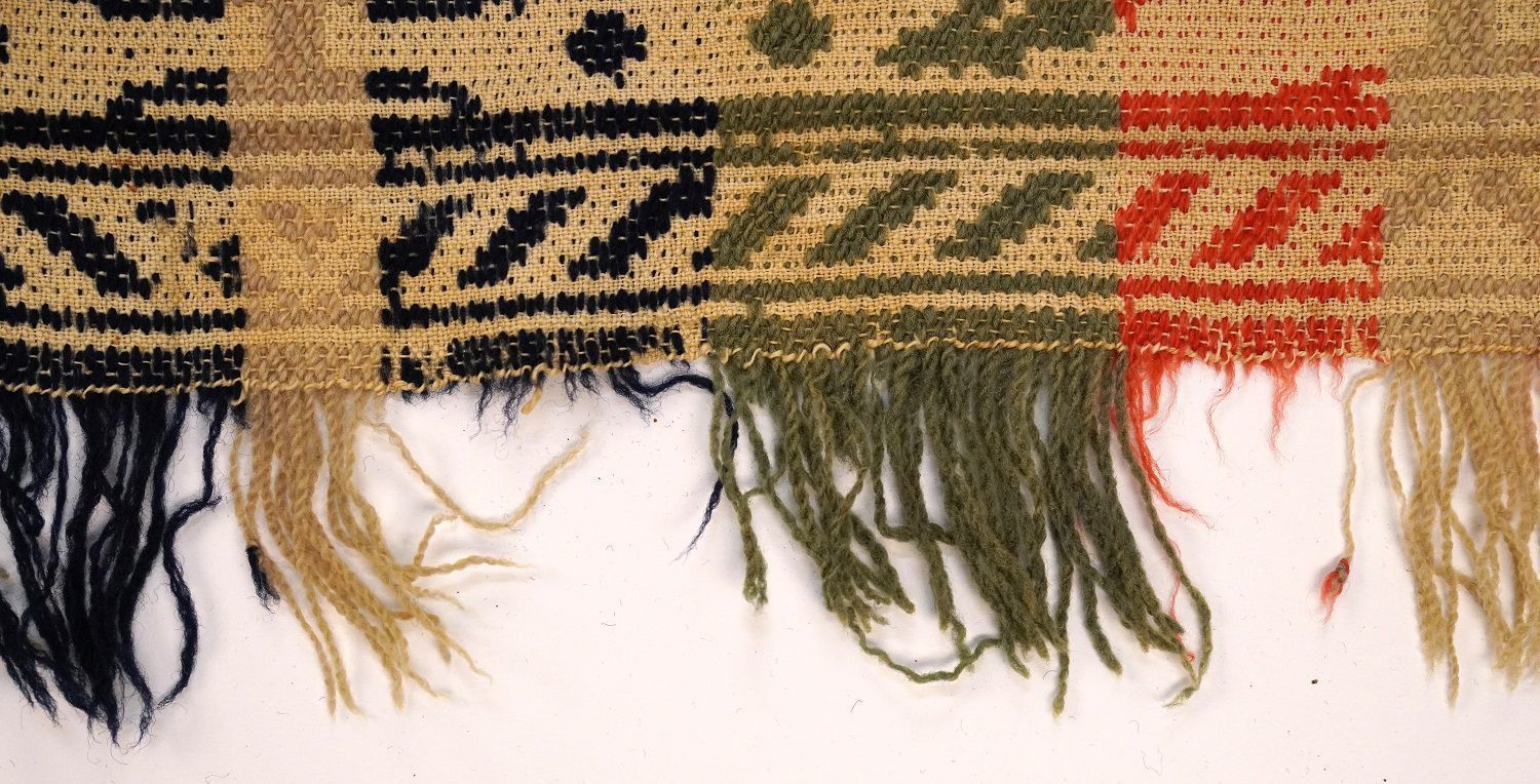 Two tones of green. Many knots on fringe ends where colors were joined; see picture. Some of the fringes are braided.Inscription/Signature/Marks