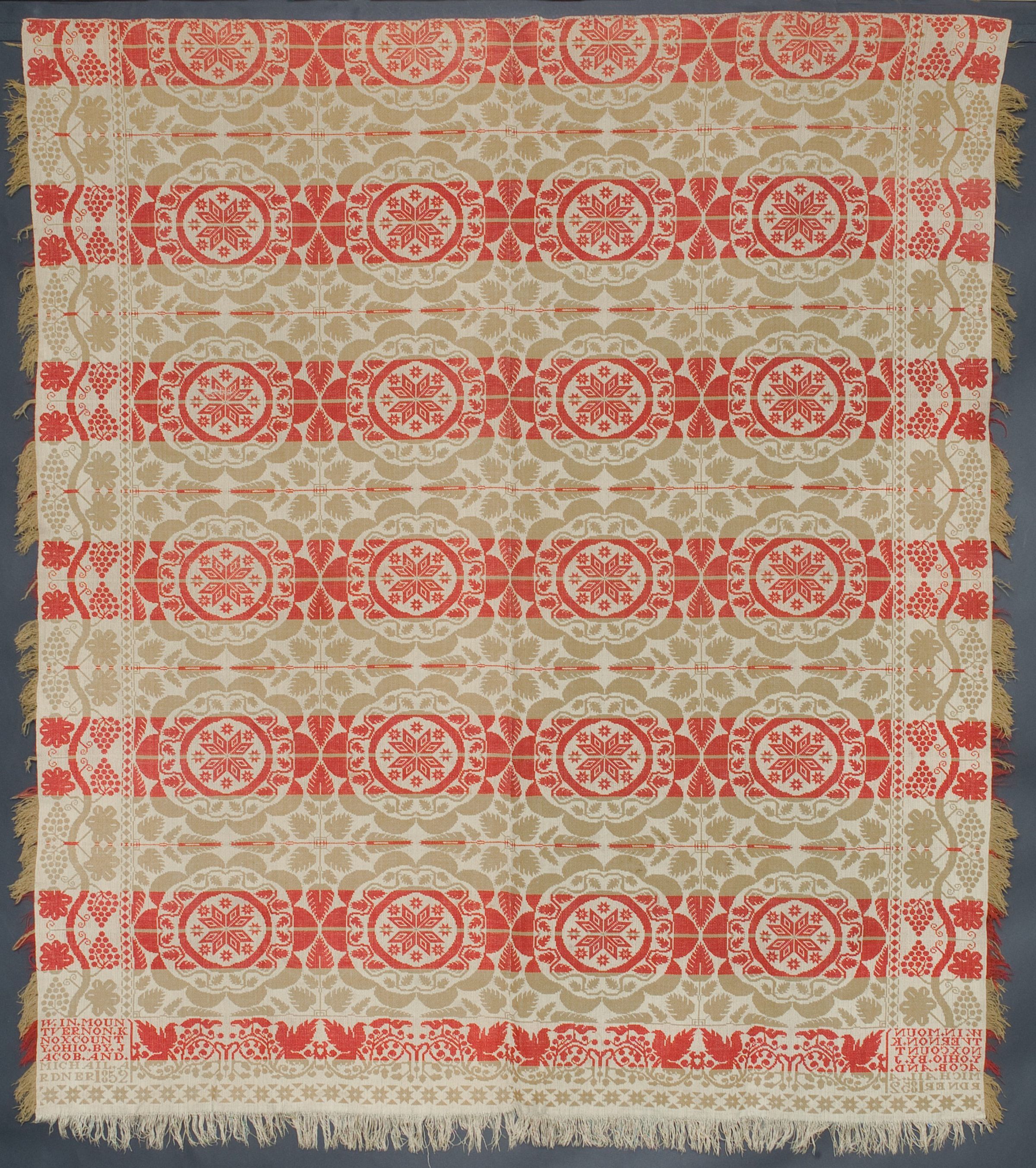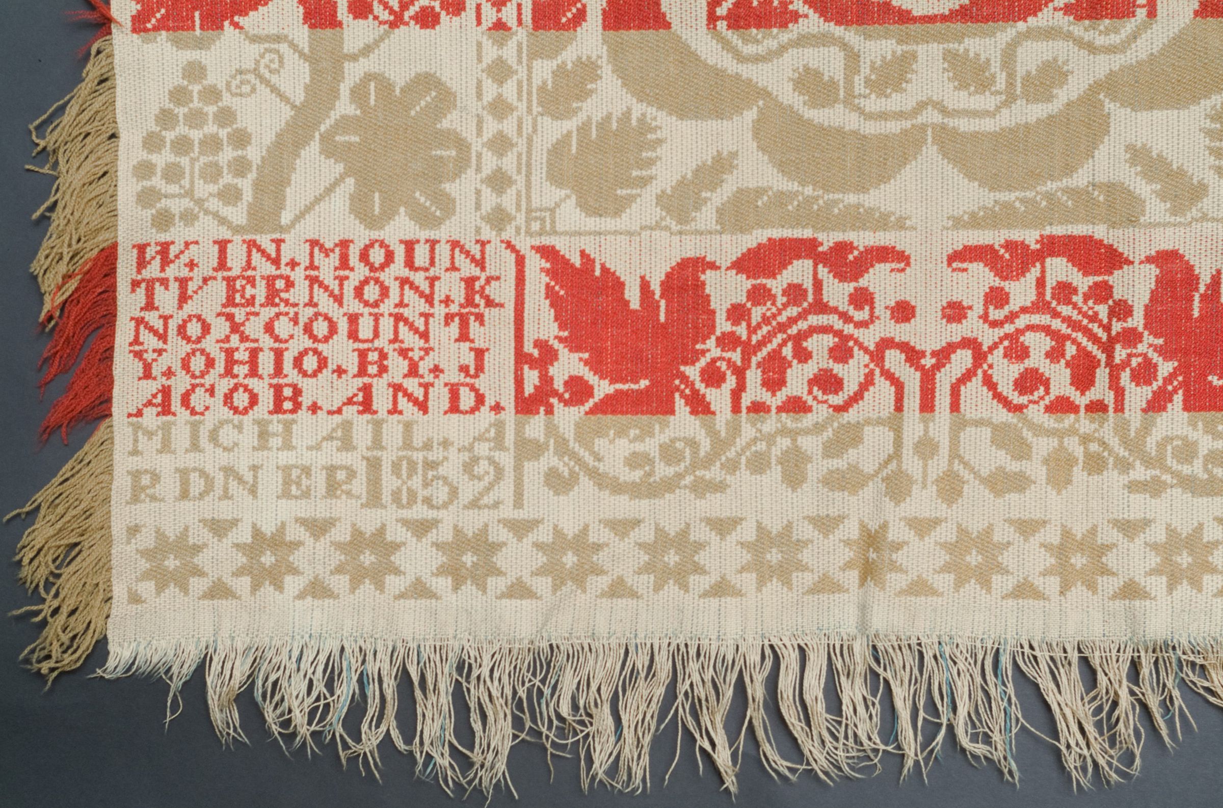 "W[oven] in Mount Vernon, Knox County, Ohio by Jacob and Michail Ardner, 1852"