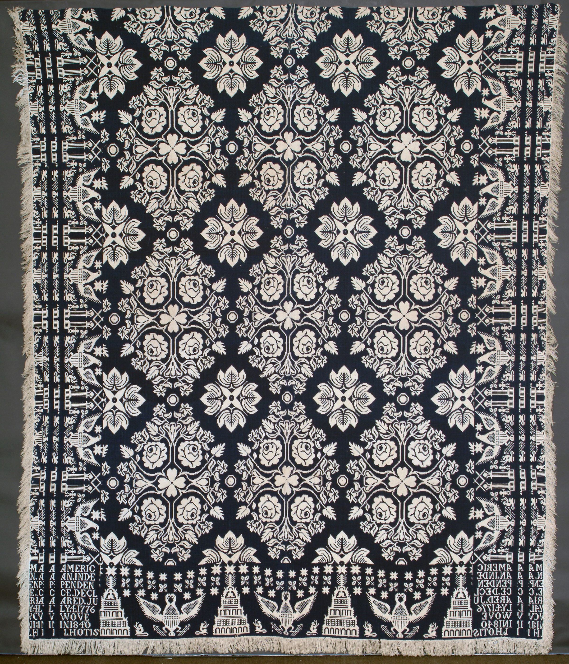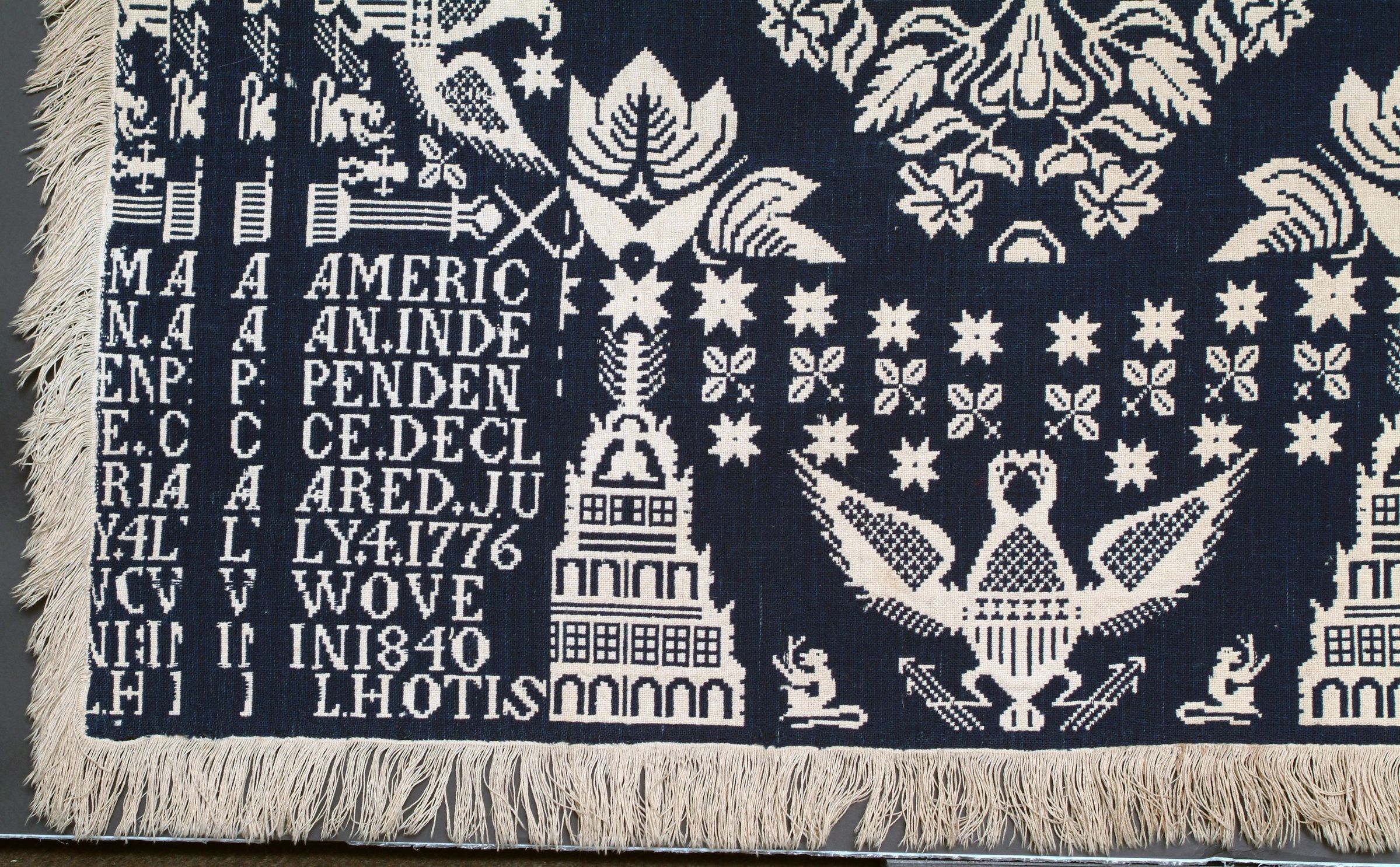 AMERIC/AN.INDE/PENDEN/CE.DECL/ARED.JU/LY.4.1776/WOVE/IN1840/L.HOTISMaterial/Technique