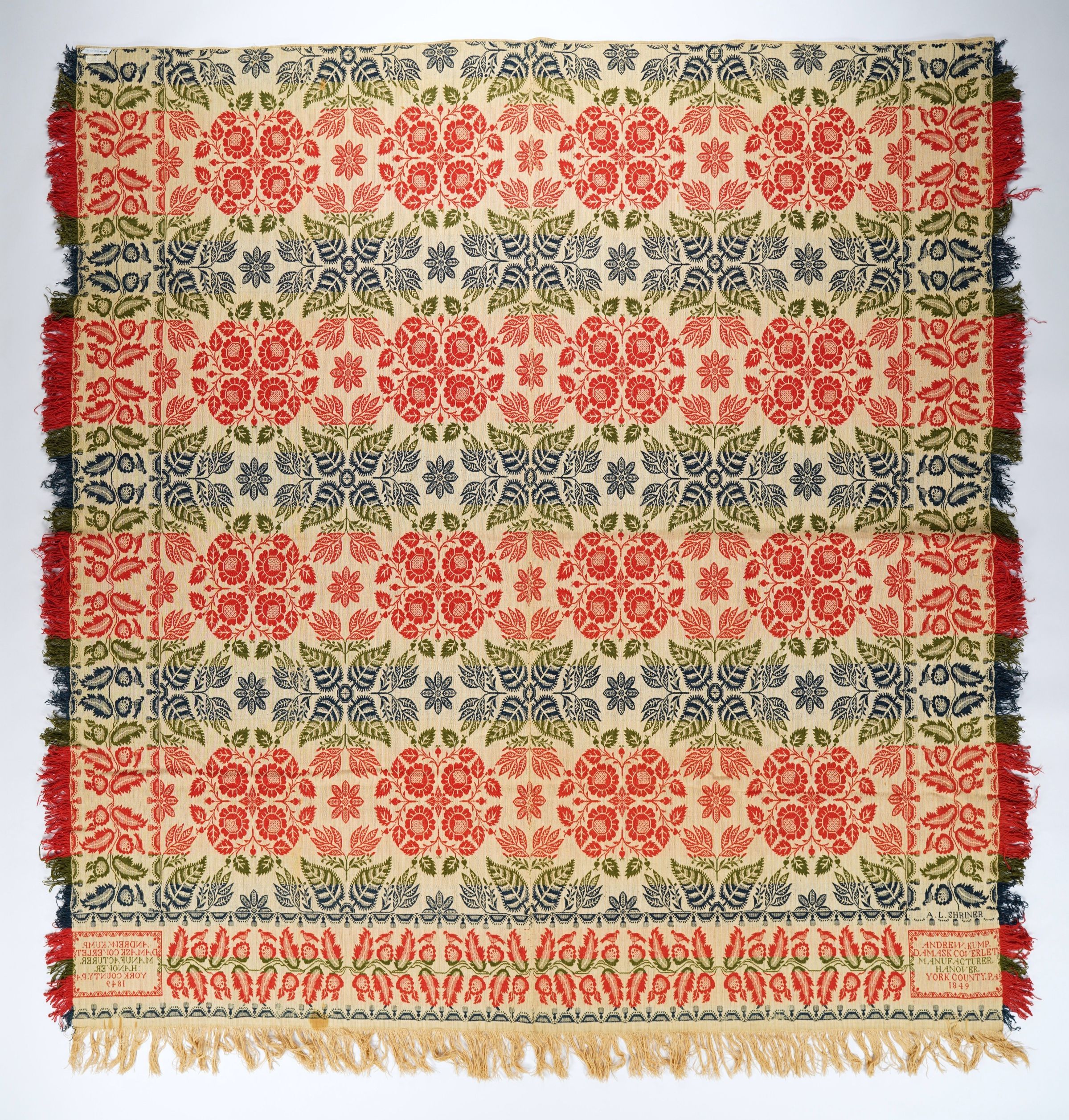 A.L. SHINER / ANDREW . KUMP . / DAMASK COVERLET / MANUFACTURER / HANOV ER. / YORK COUNTY . PA / 1849Material/Technique
