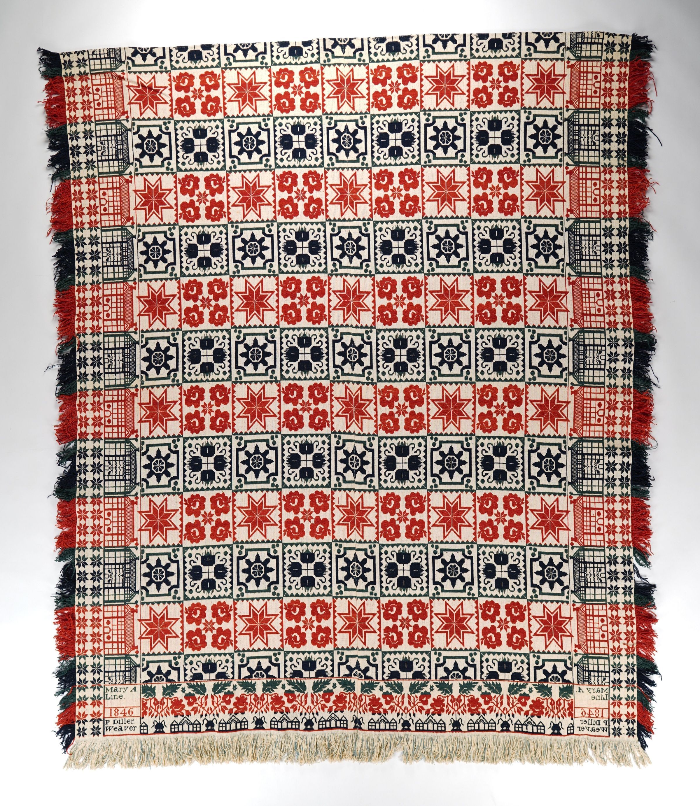 Pennsylvania coverlet by Peter Diller for Mary A. Line, 1846, tied beiderwandEntry/Object ID