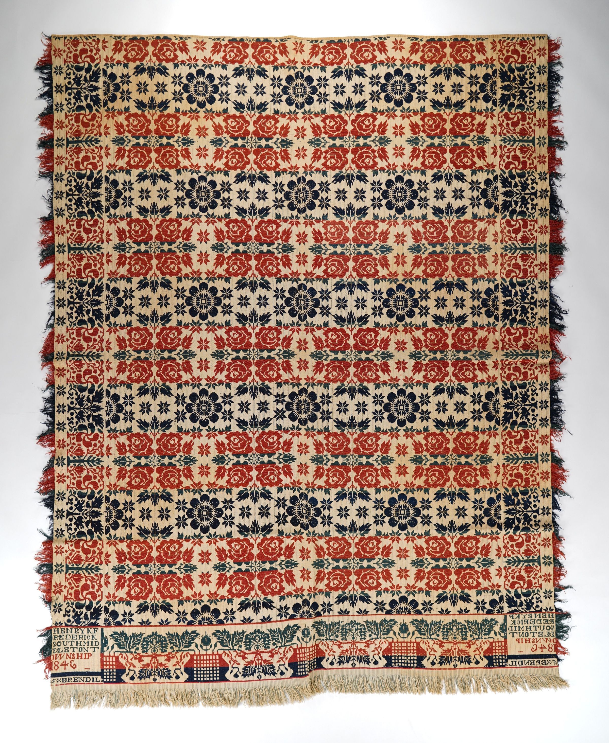 Pennsylvania coverlet by Henry K. Frederick for S. Brendil, 1846, tied beiderwandEntry/Object ID