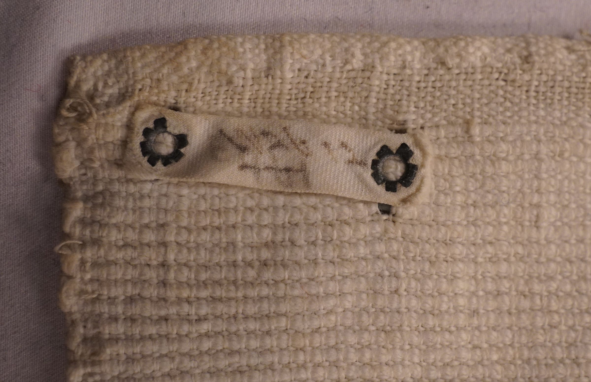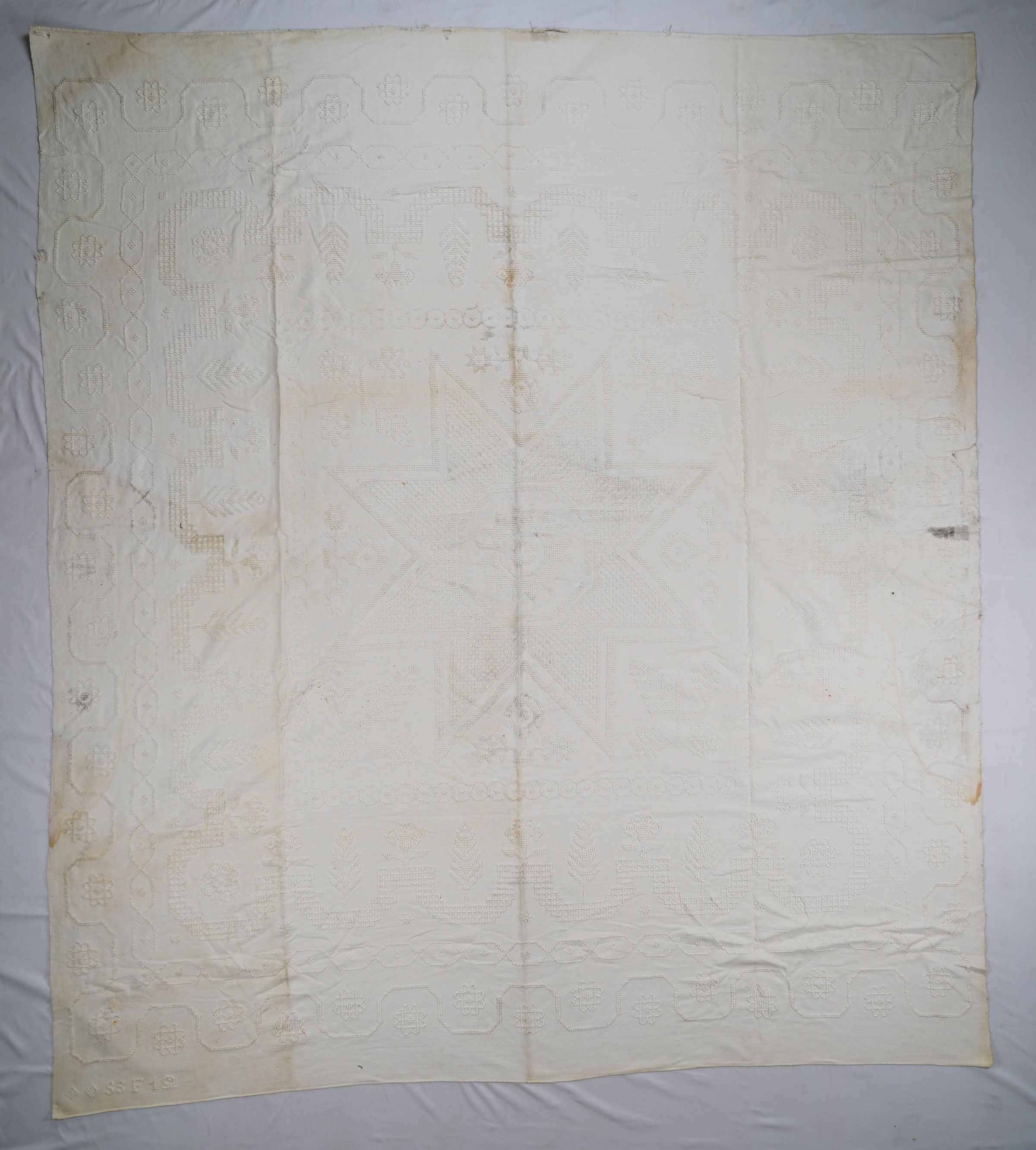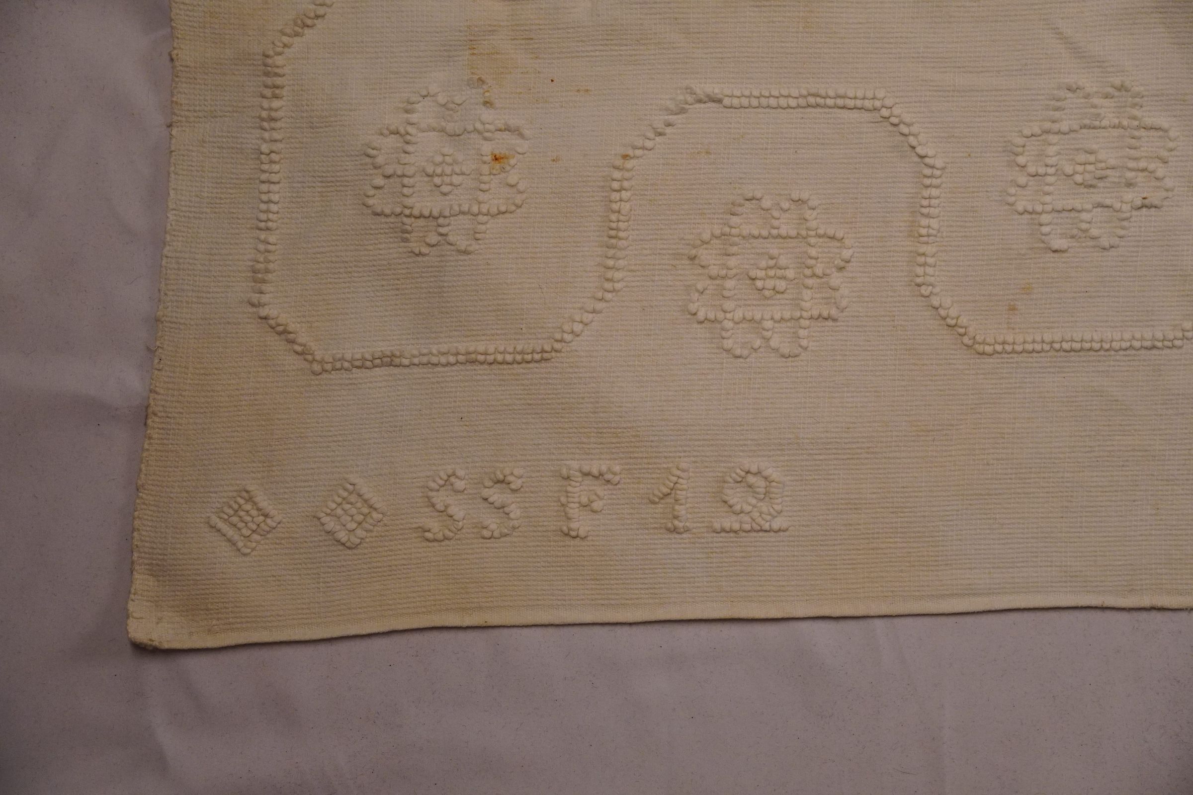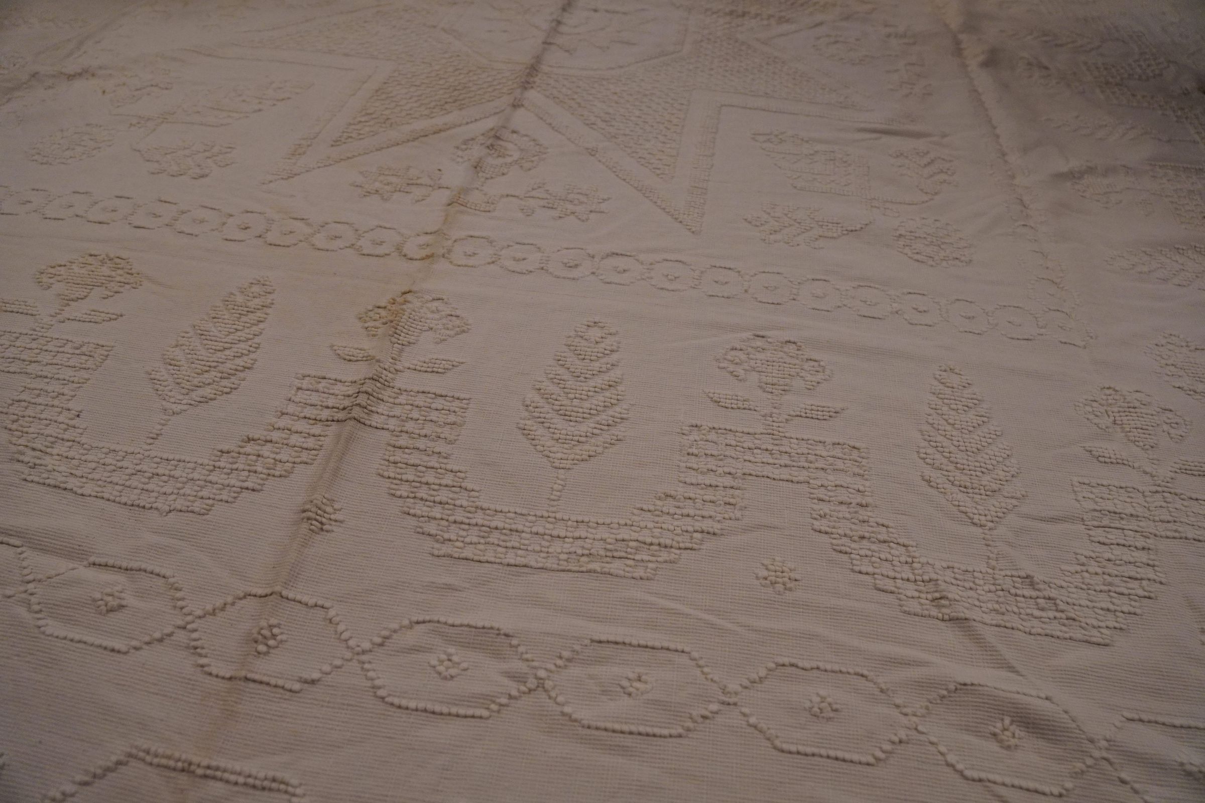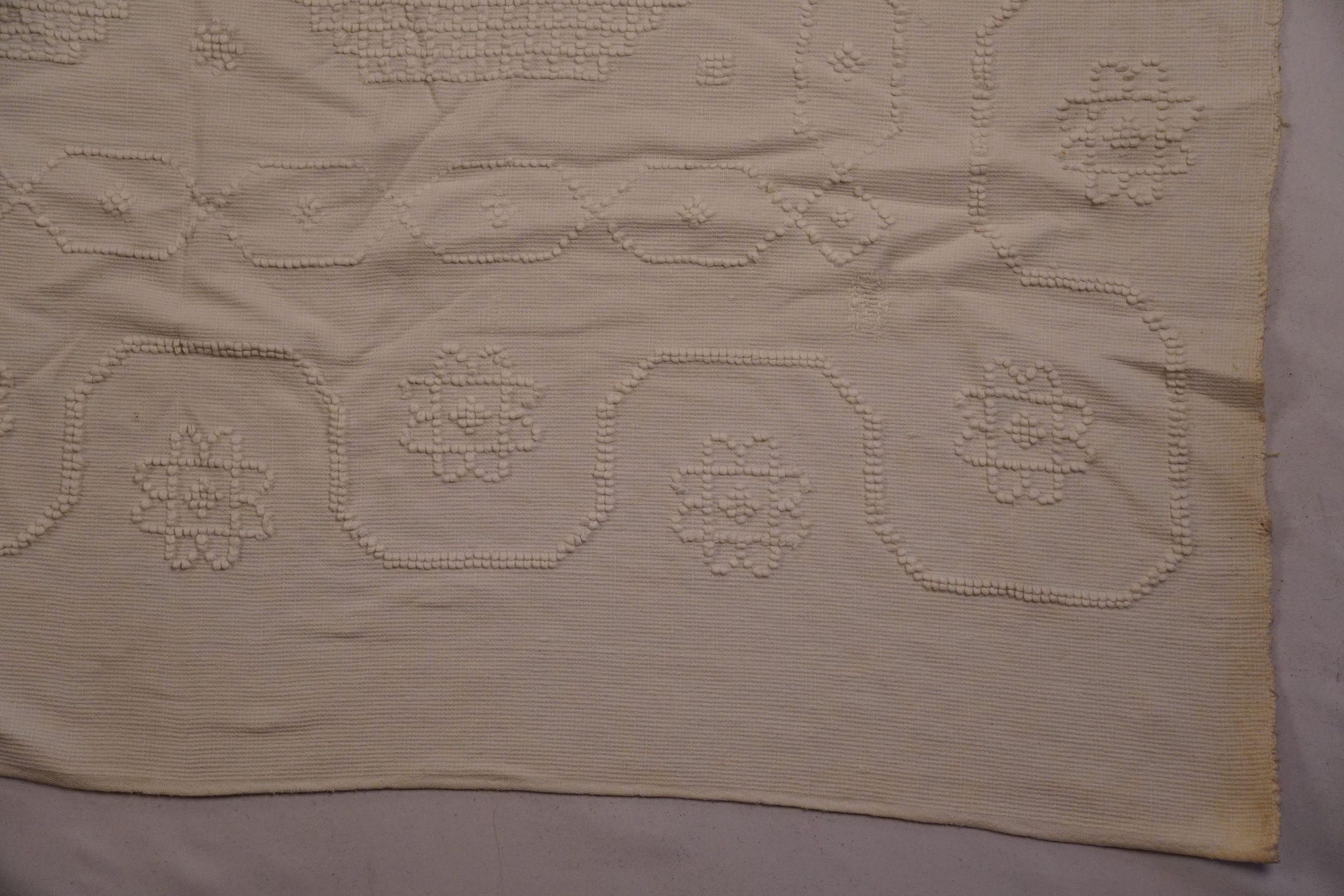 Natural figured weft loop coverlet; seamless. Border on four sides; no fringeCollection