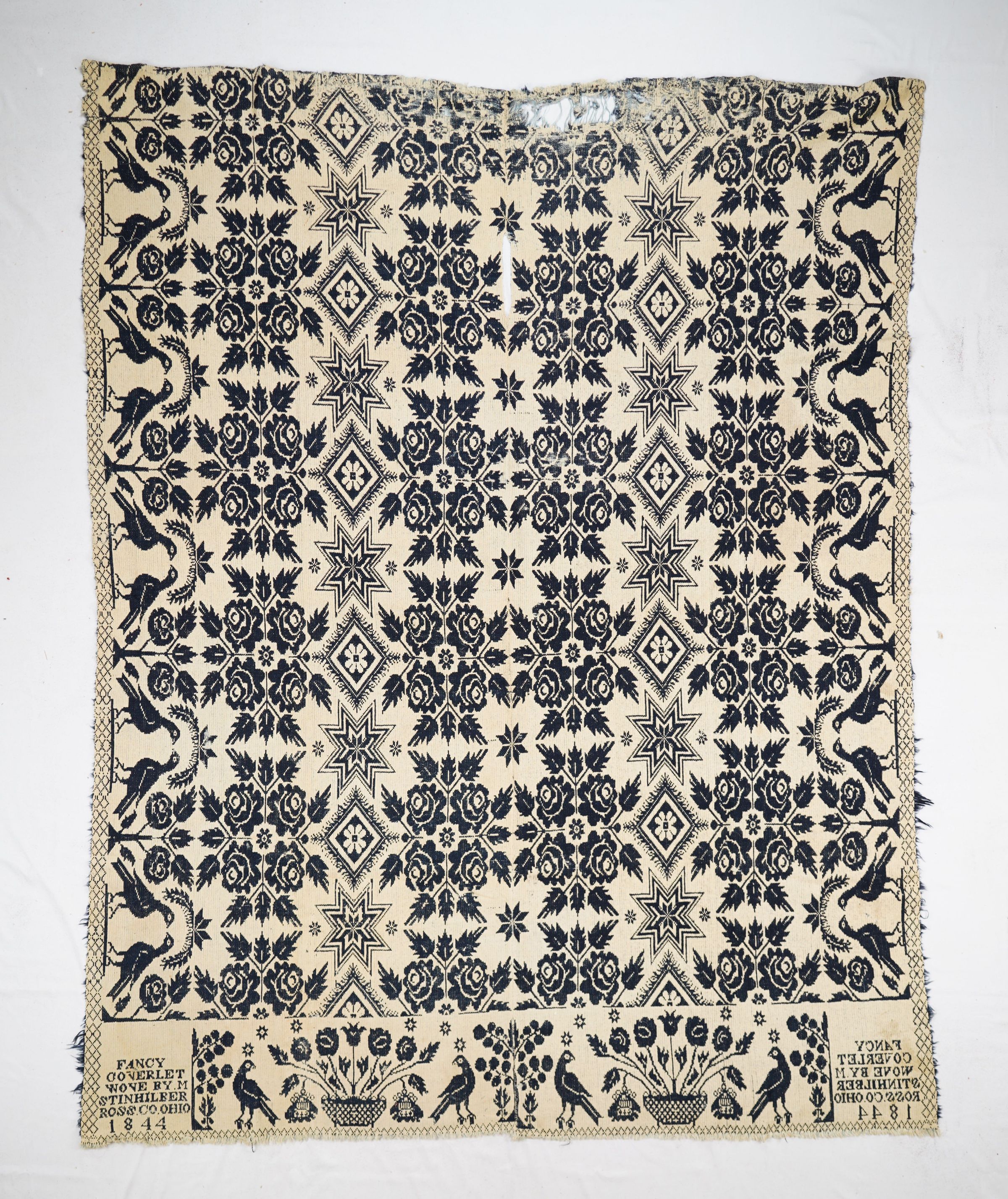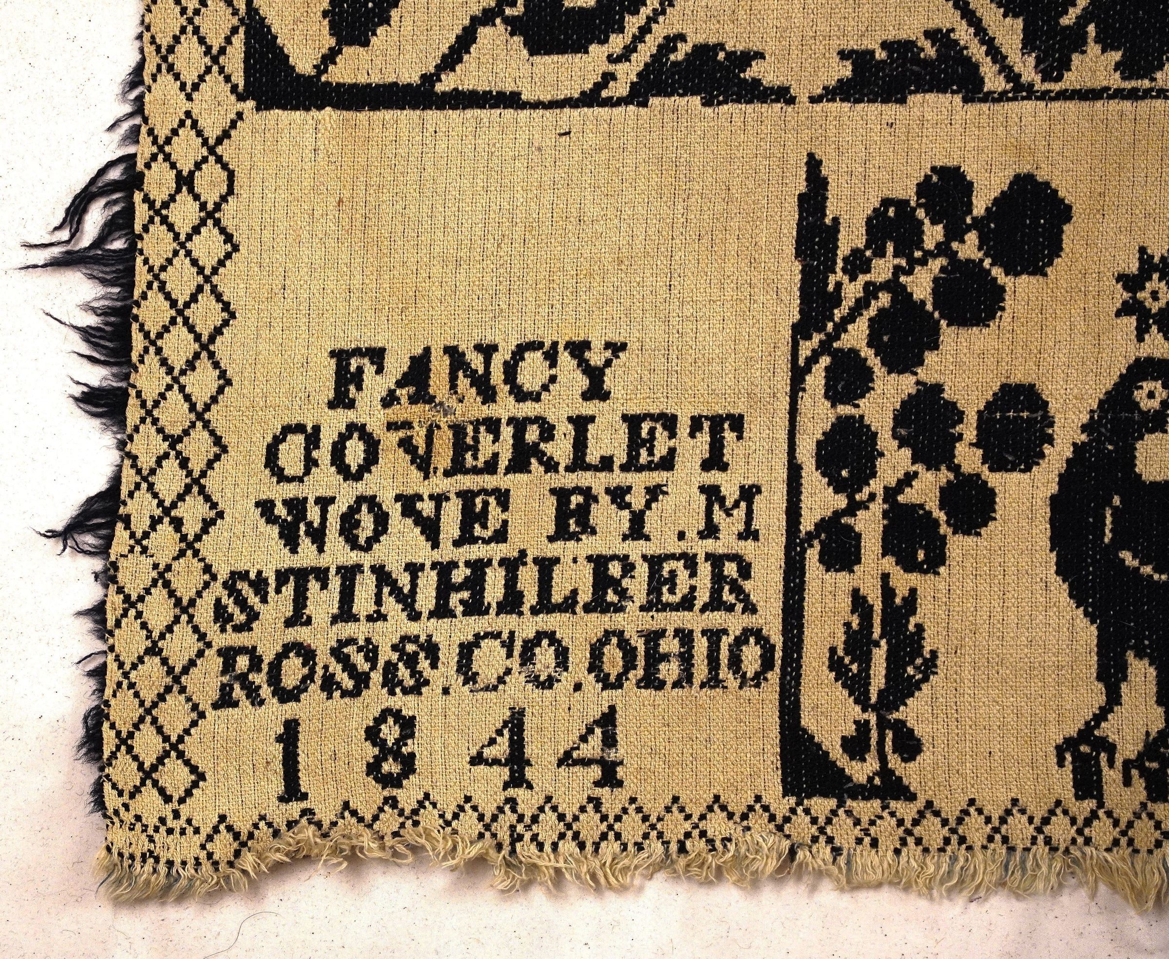 FANCY / COVERLET / WOVE BY M. / STINHILBER / ROSS.CO.OHIO / 1844
