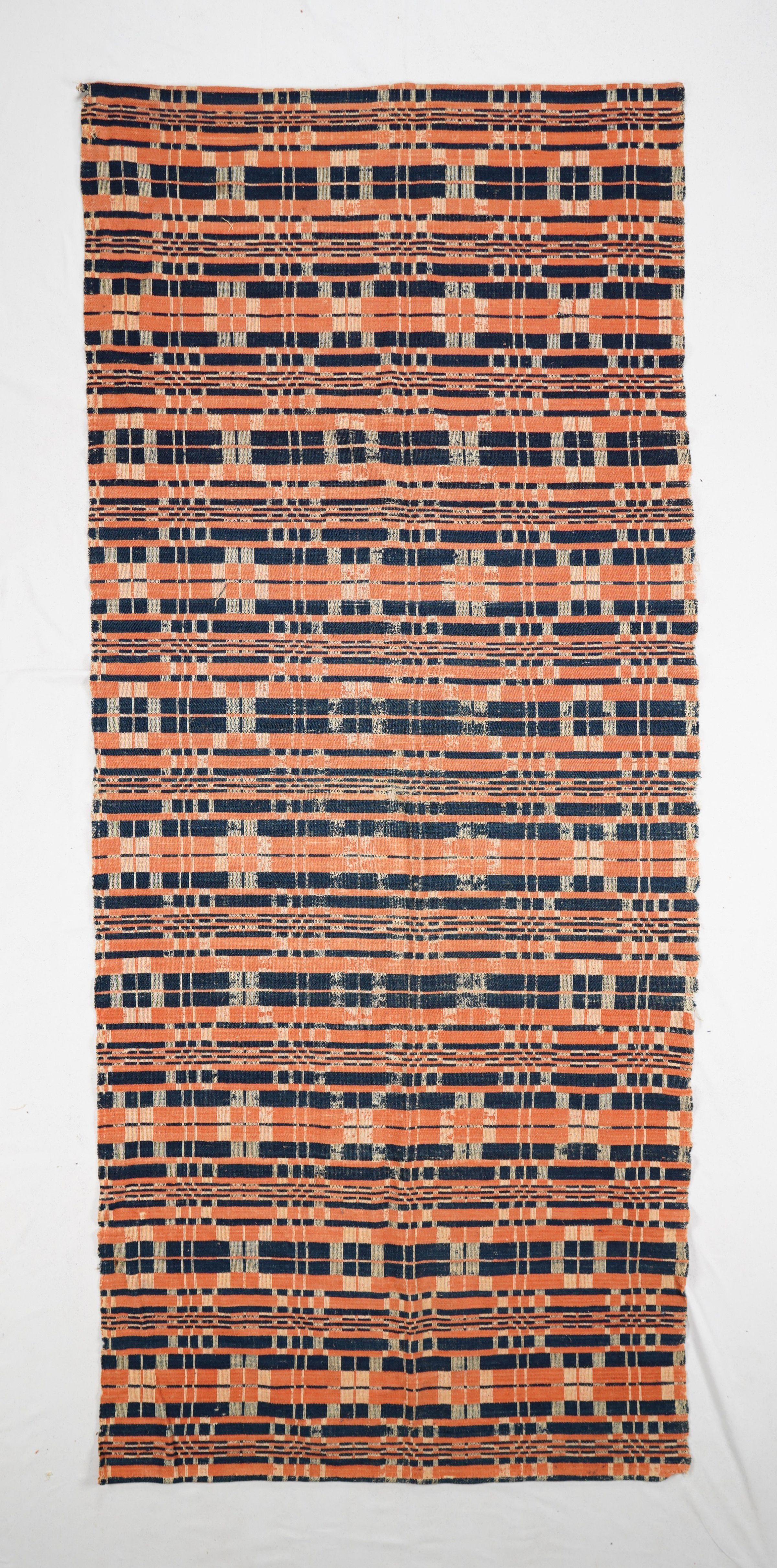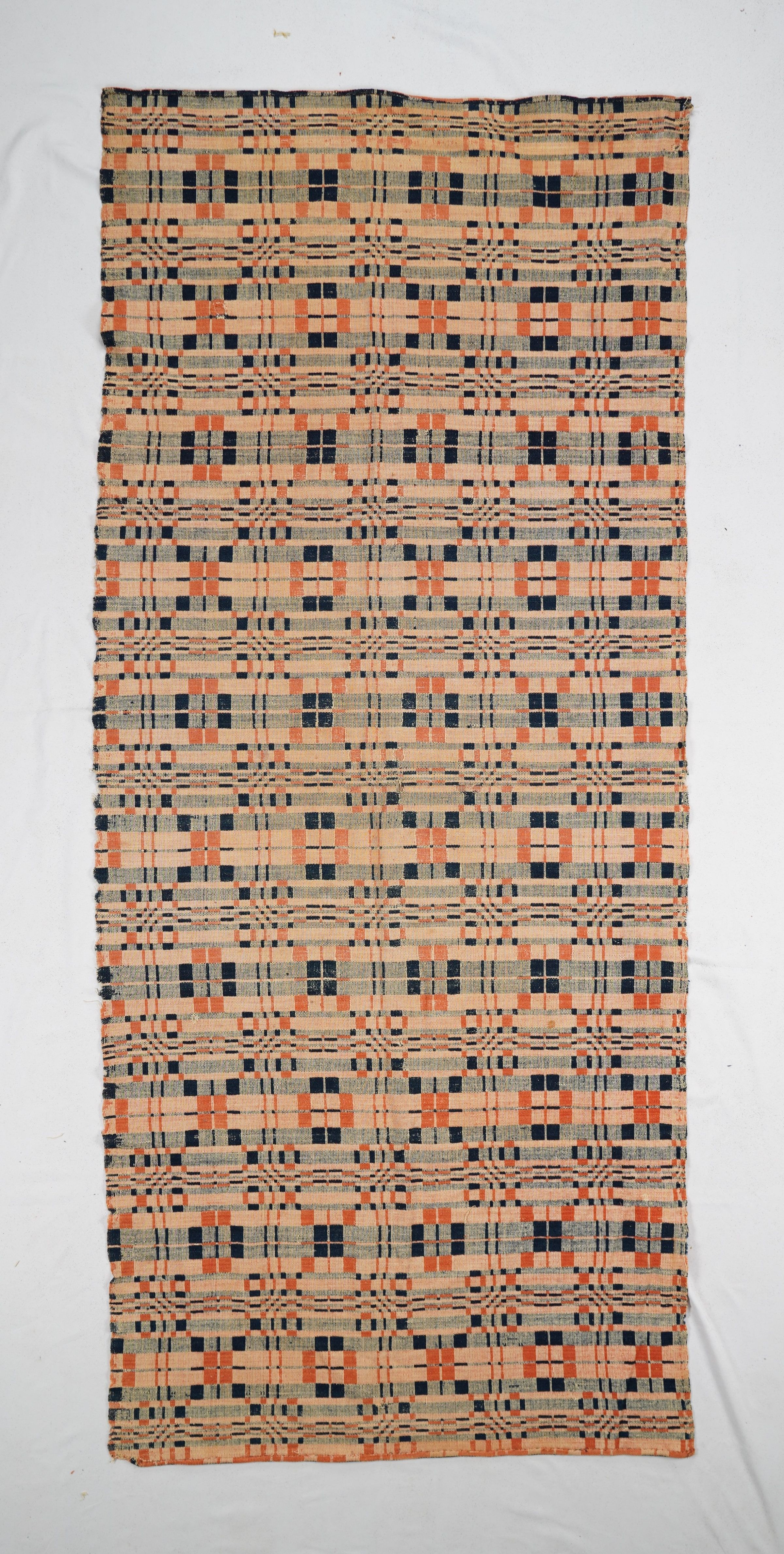 Natural, Navy, and Red geometric Summer & Winter coverlet; seamless. No border or Fringe