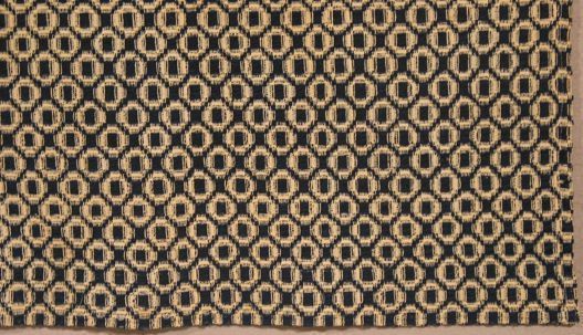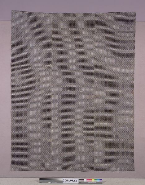 Overshot coverlet; undyed cotton and blue wool. Coverlet has two seams joining three panels. All edges are hemmed; sides are turned under, top and bottom have 1.5 inch facing over hem. Central motif is of a very small diagonal lozenge repeat. Four lozenges make a block that is approximately 1.5 x 1.5 inch.Collection