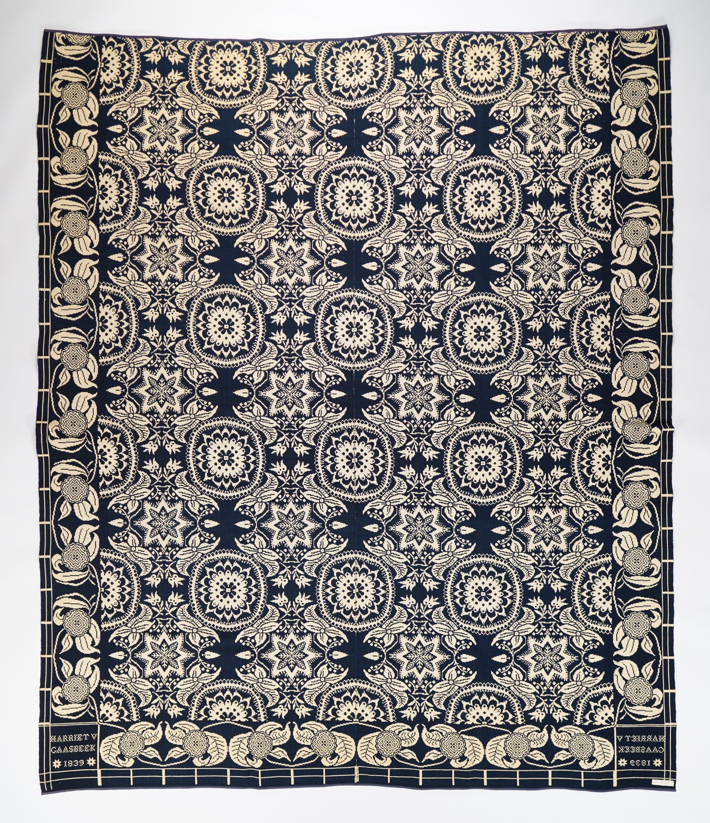 New York coverlet by Salmon Lake for Harriet Gasbeek, 1839, doublweaveEntry/Object ID