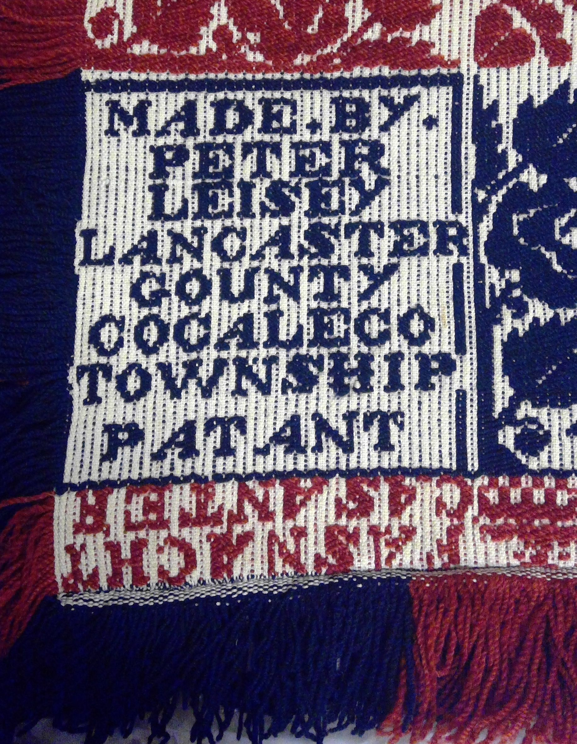 MADE.BY./PETER/LEISEY/LANCASTER/COUNTY/COCALECO/TOWNSHIP/PATANTMaterial/Technique