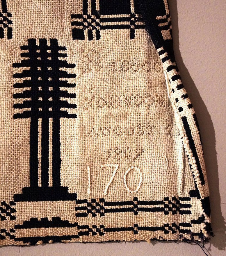 Inscription: cross-stitched into one corner in white cotton: REBECCA JOHNSON AUGUST 2, 1809/170.