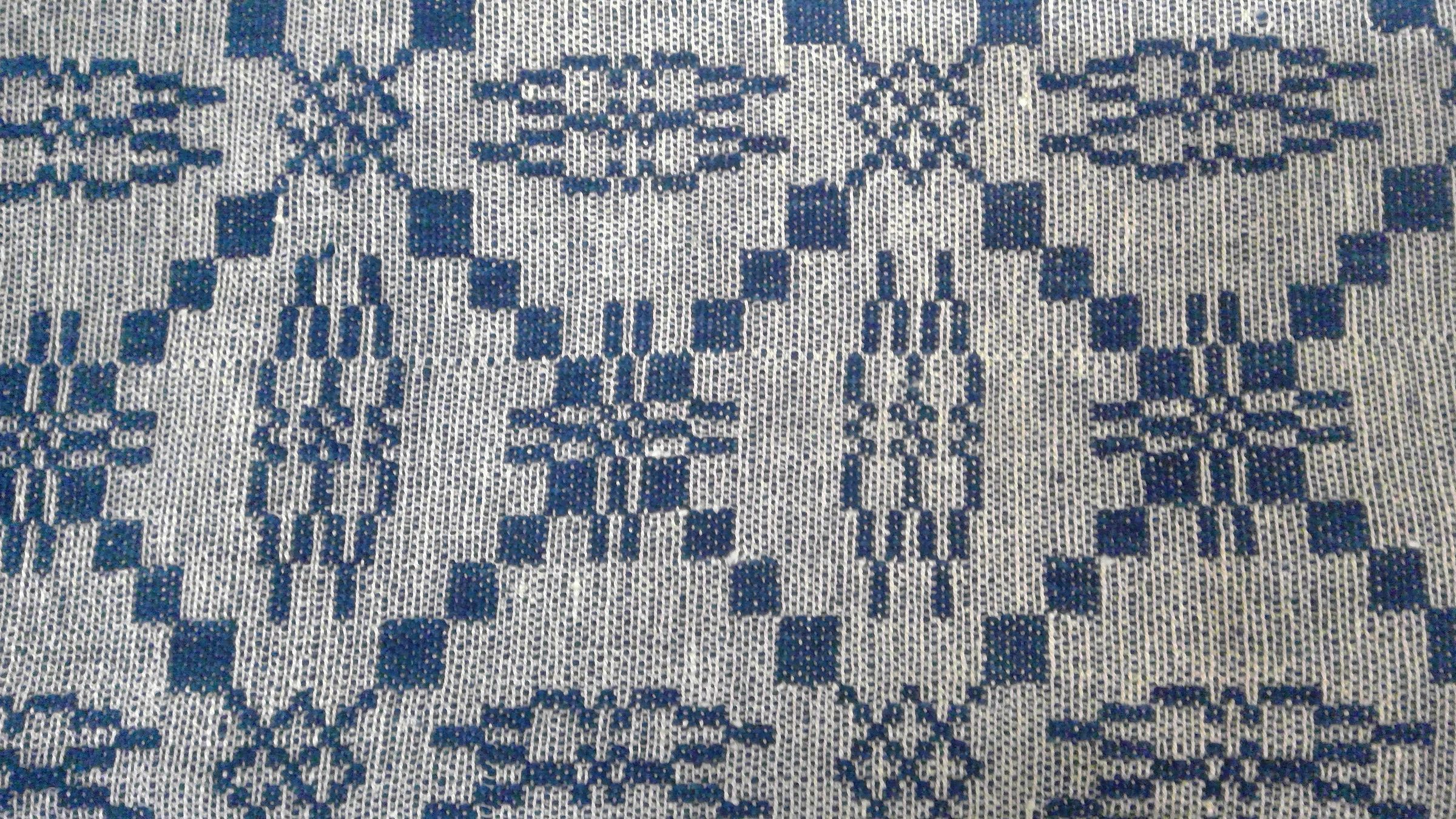 Design: Large "X's" connecting together forming triangles which have double triangles inside them both vertically and horizontally.