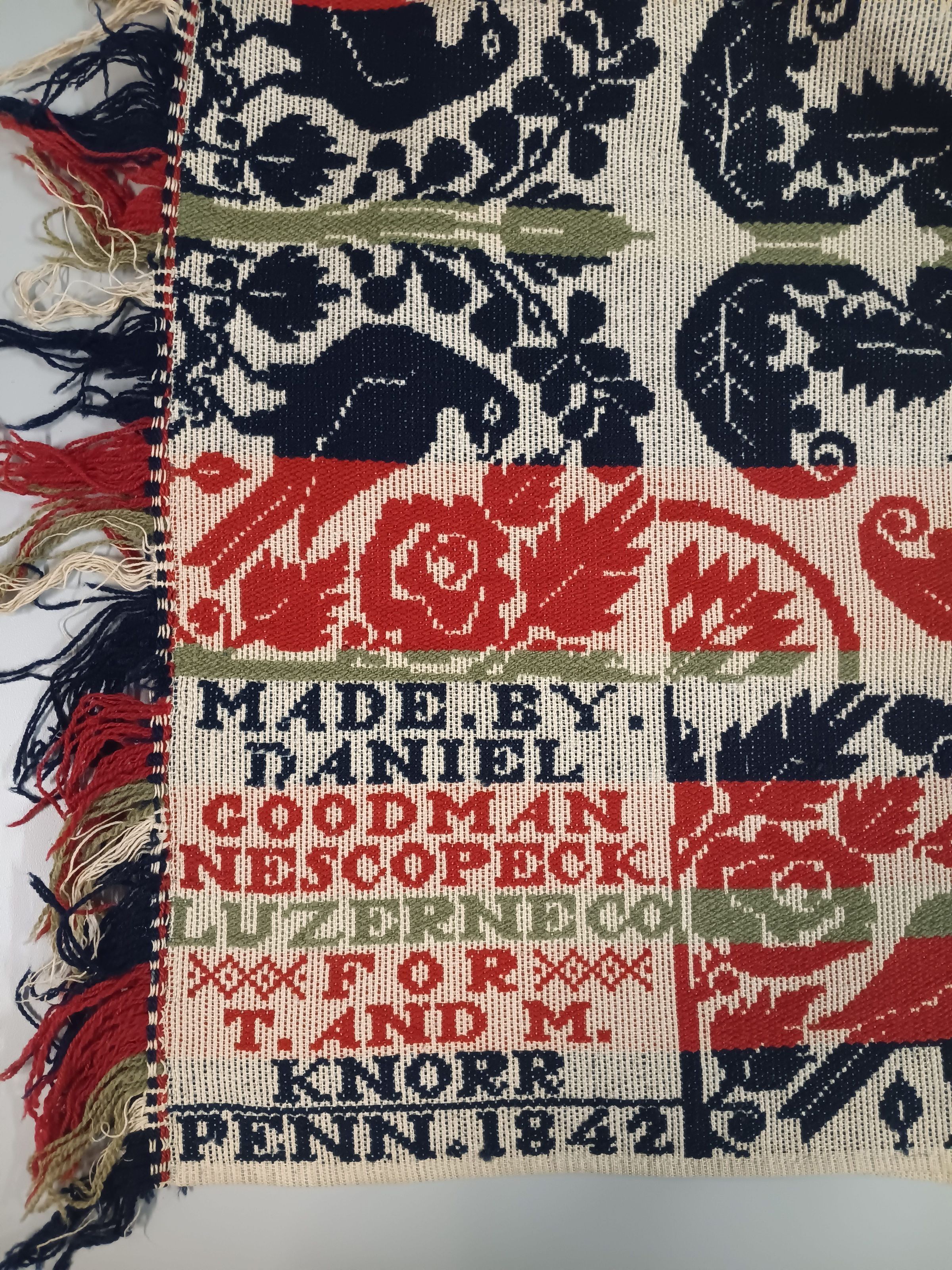 Pennsylvania coverlet by Daniel Goodman for T. and M. Knorr, 1842, tied beiderwandEntry/Object ID