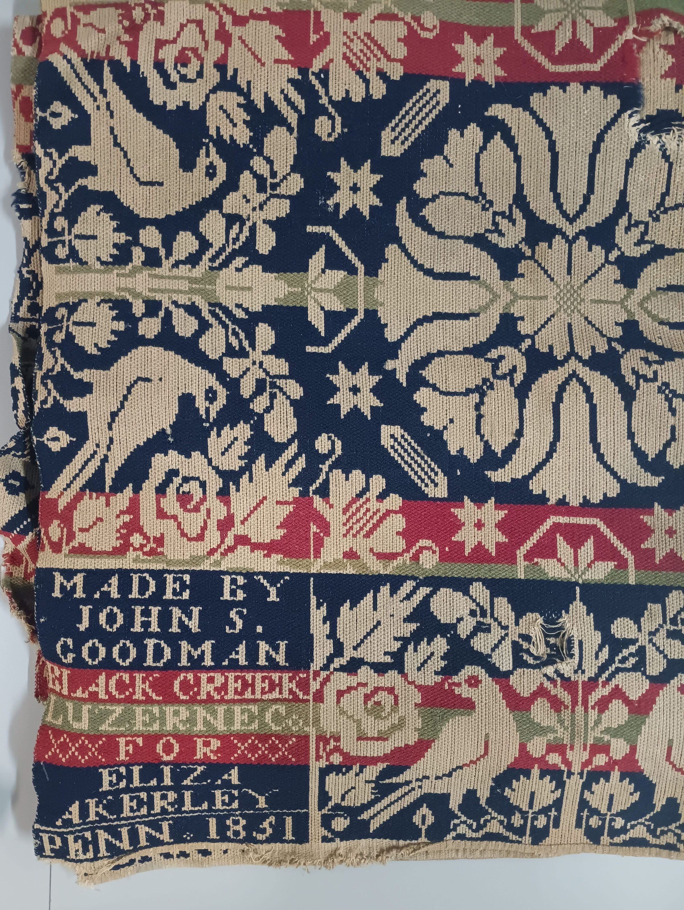 MADE BY/JOHN S./GOODMAN/BLACK CREEK/LUZERNE Co./FOR/ELIZA/AKERLEY/PENN.1851Material/Technique