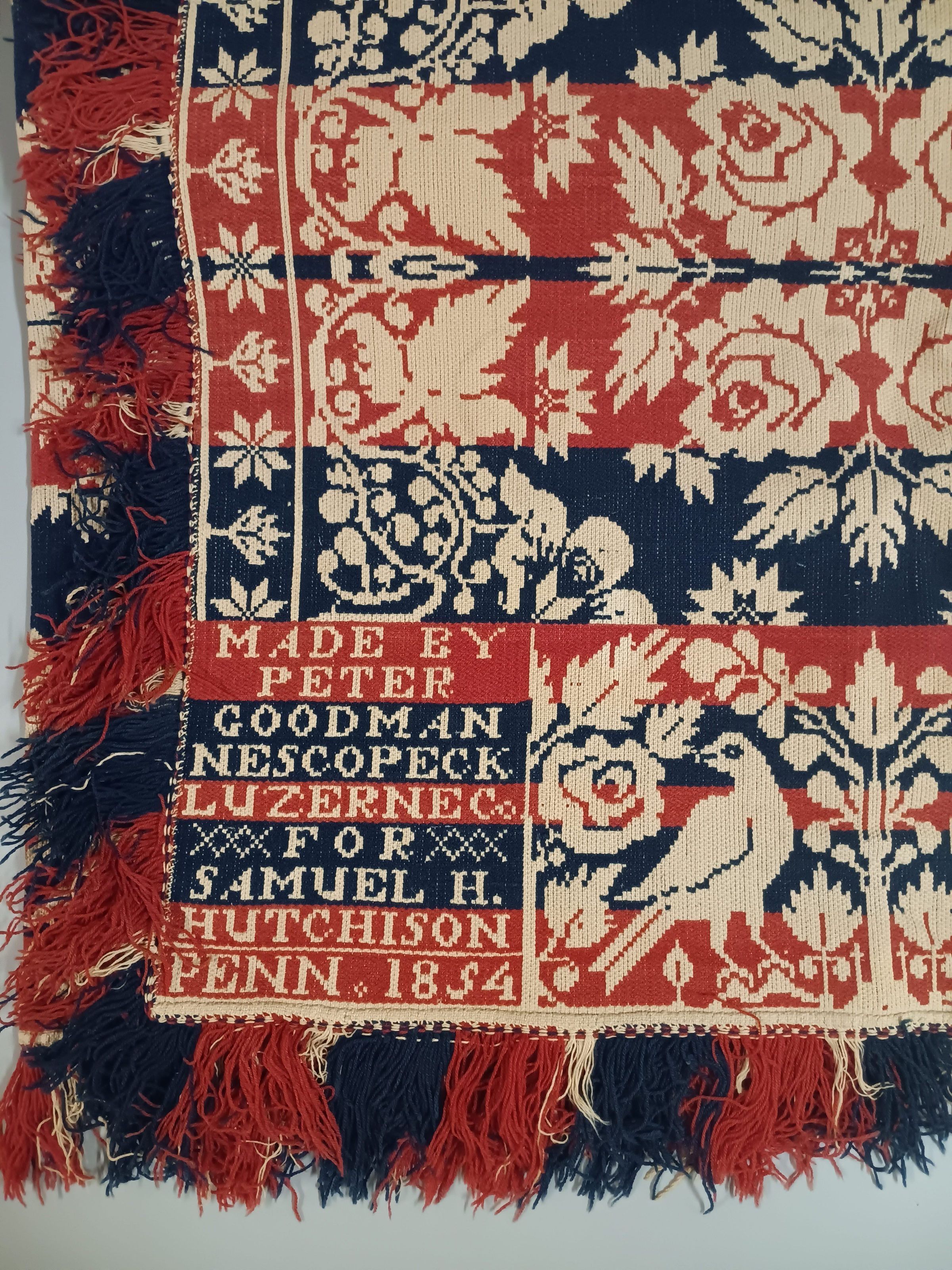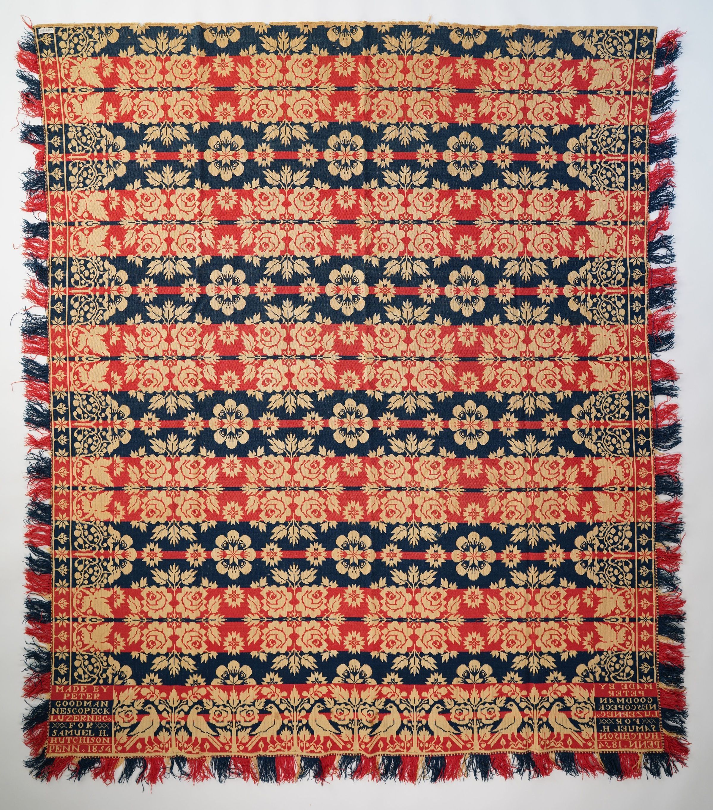 Pennsylvania coverlet by Peter Goodman for Samuel H. Hutchison, 1854, tied beiderwandEntry/Object ID