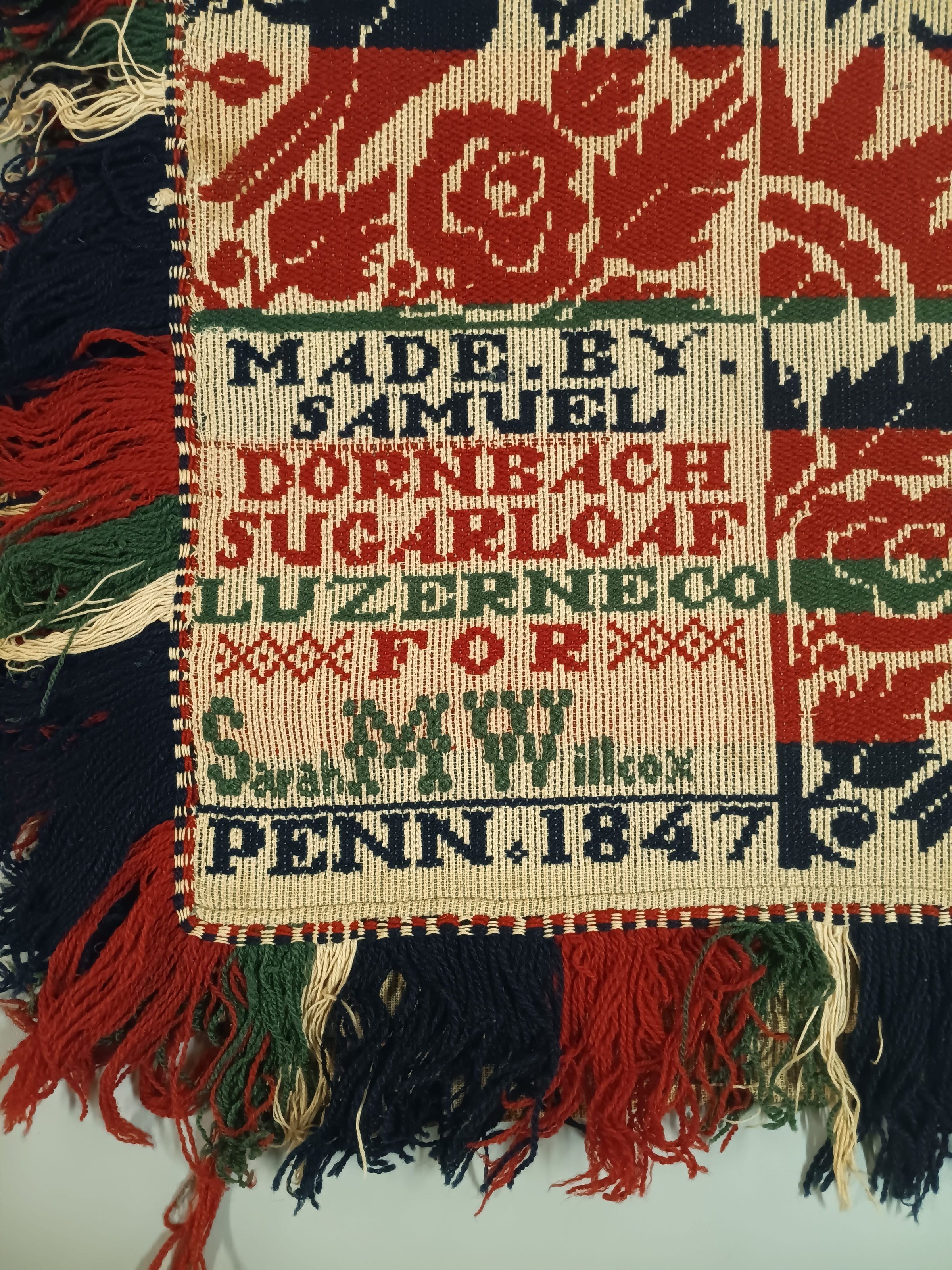 MADE.BY./SAMUEL/DORNBACH/SUGARLOAF/LUZERNE CO/FOR/Sarah M Willcox/PENN.1847Material/Technique