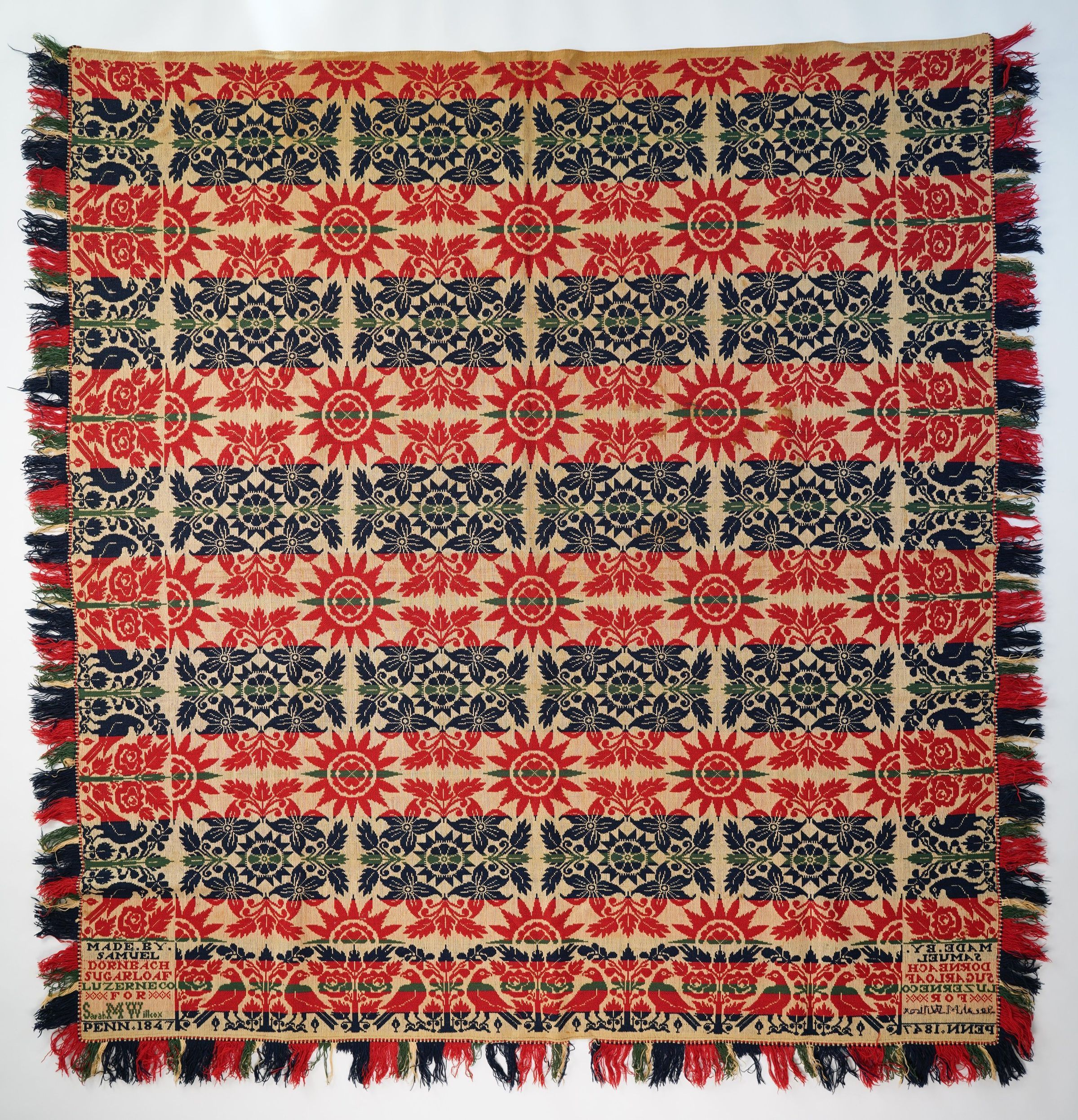 Pennsylvania coverlet by Samuel Dornbach, 1847, tied beiderwandEntry/Object ID