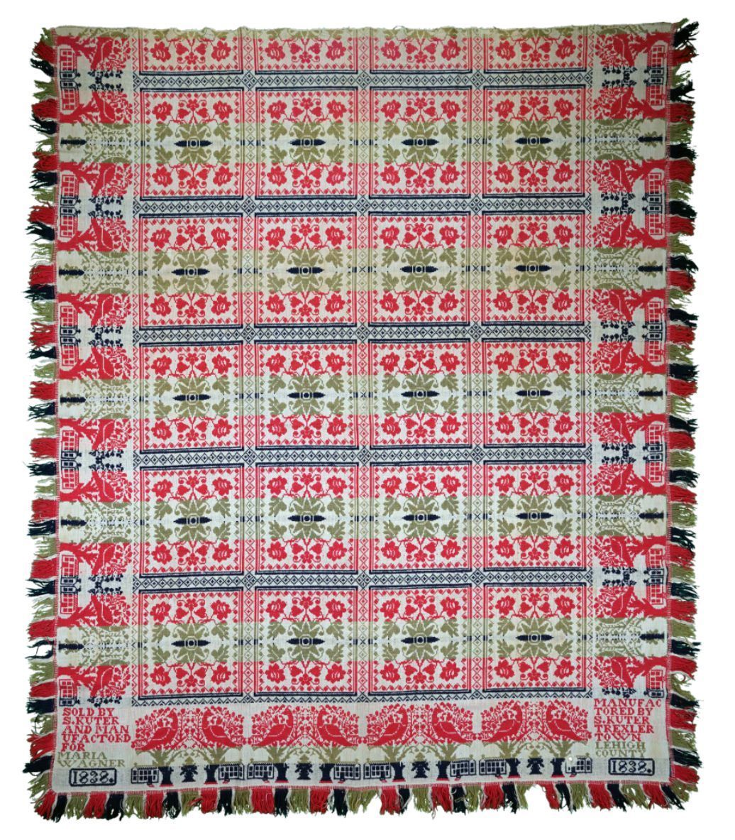 Pennsylvania coverlet by Solomon Kuter for Maria Wagner, 1838, tied beiderwandEntry/Object ID
