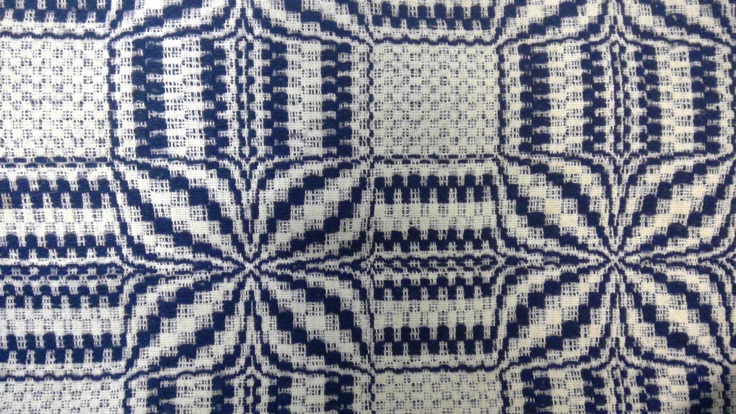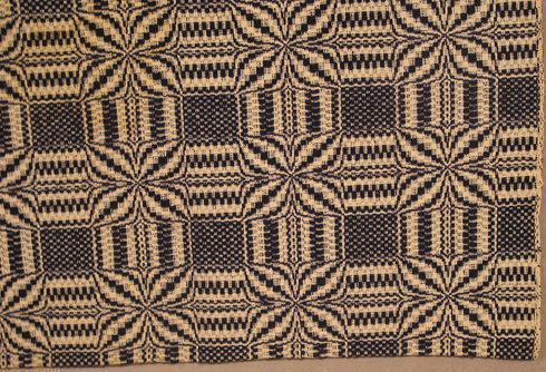 Natural cotton with blue wool, olive leaf pattern, woven by the Clinch Valley Blanket Mill, Cedar Bluff, VACollection