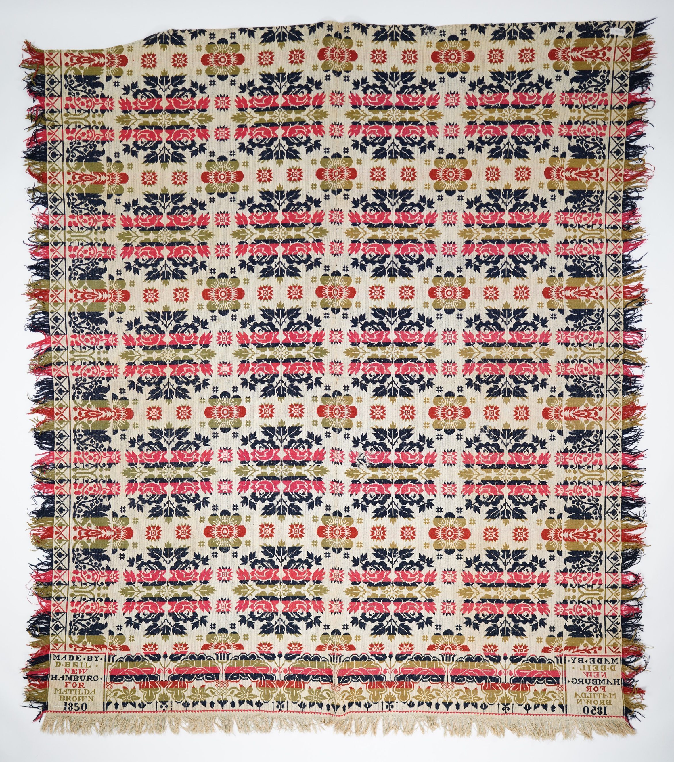 Pennsylvania coverlet by David Beil for Matilda Brown, 1850, tied beiderwandEntry/Object ID