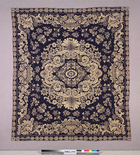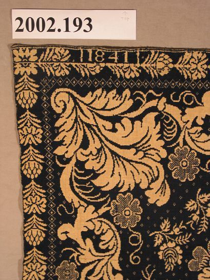 blue and white floral coverlet- floral field dated 1841 linsey-woolsey(?)