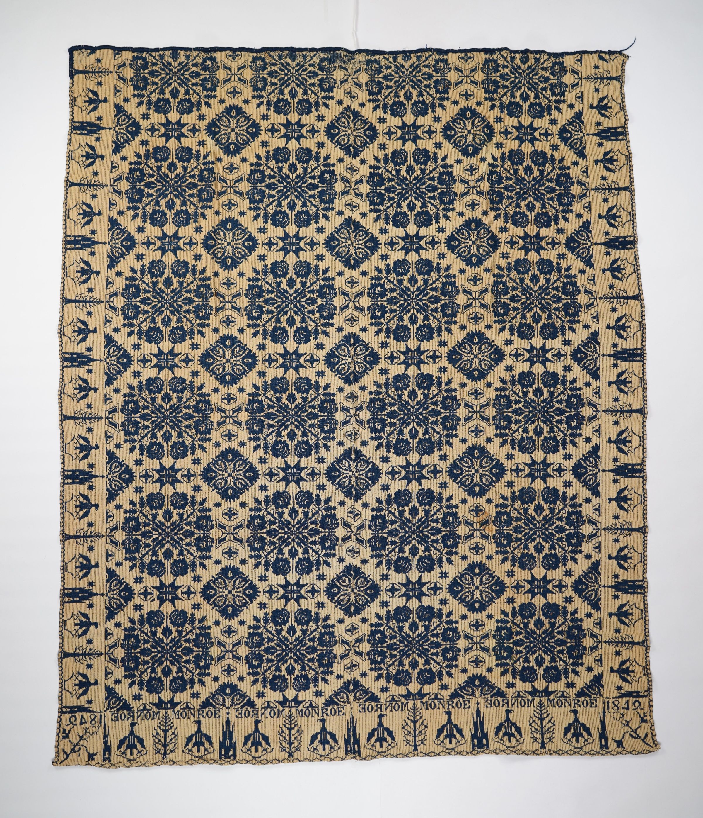 Coverlet, tied beiderwand, woven in Monroe, 1842Entry/Object ID