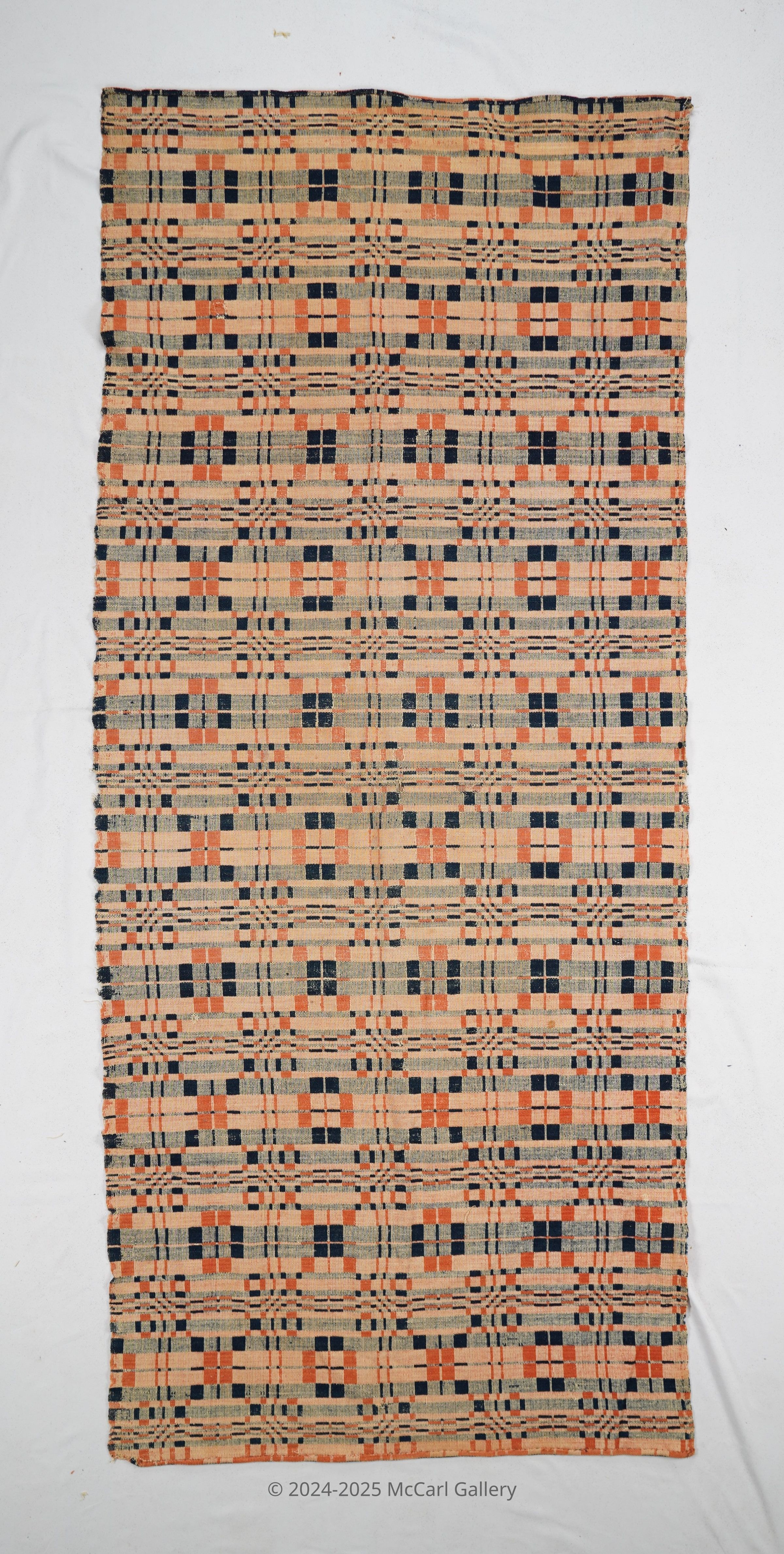 Natural, Navy, and Red geometric Summer & Winter coverlet; seamless. No border or Fringe