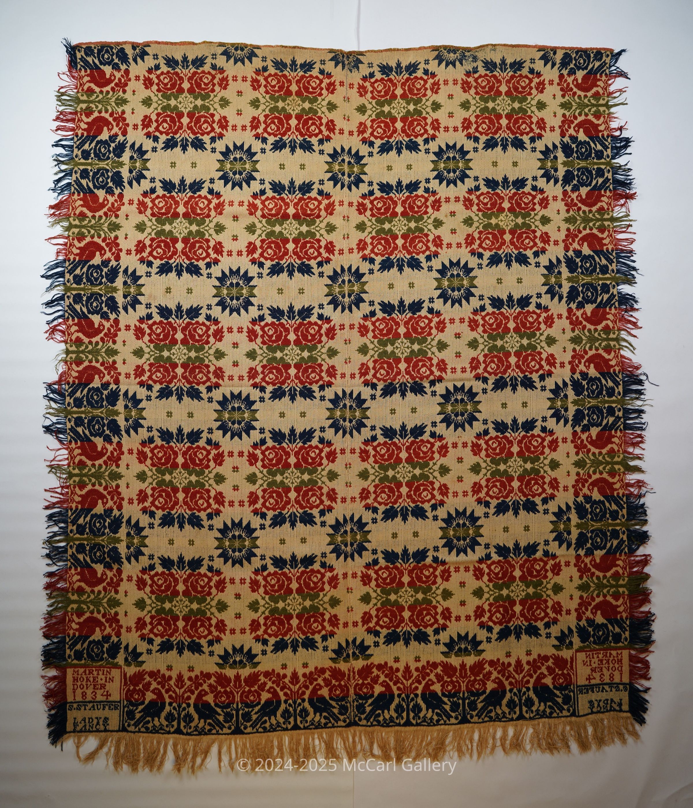 Pennsylvania coverlet by Martin Hoke for S. Staufer, 1834, tied beiderwandEntry/Object ID
