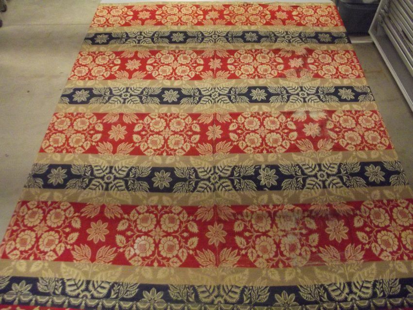 Beiderwand, center seam, blue, red, green with fringe on two sides. Floral and birds. Ornate patternAcquisition