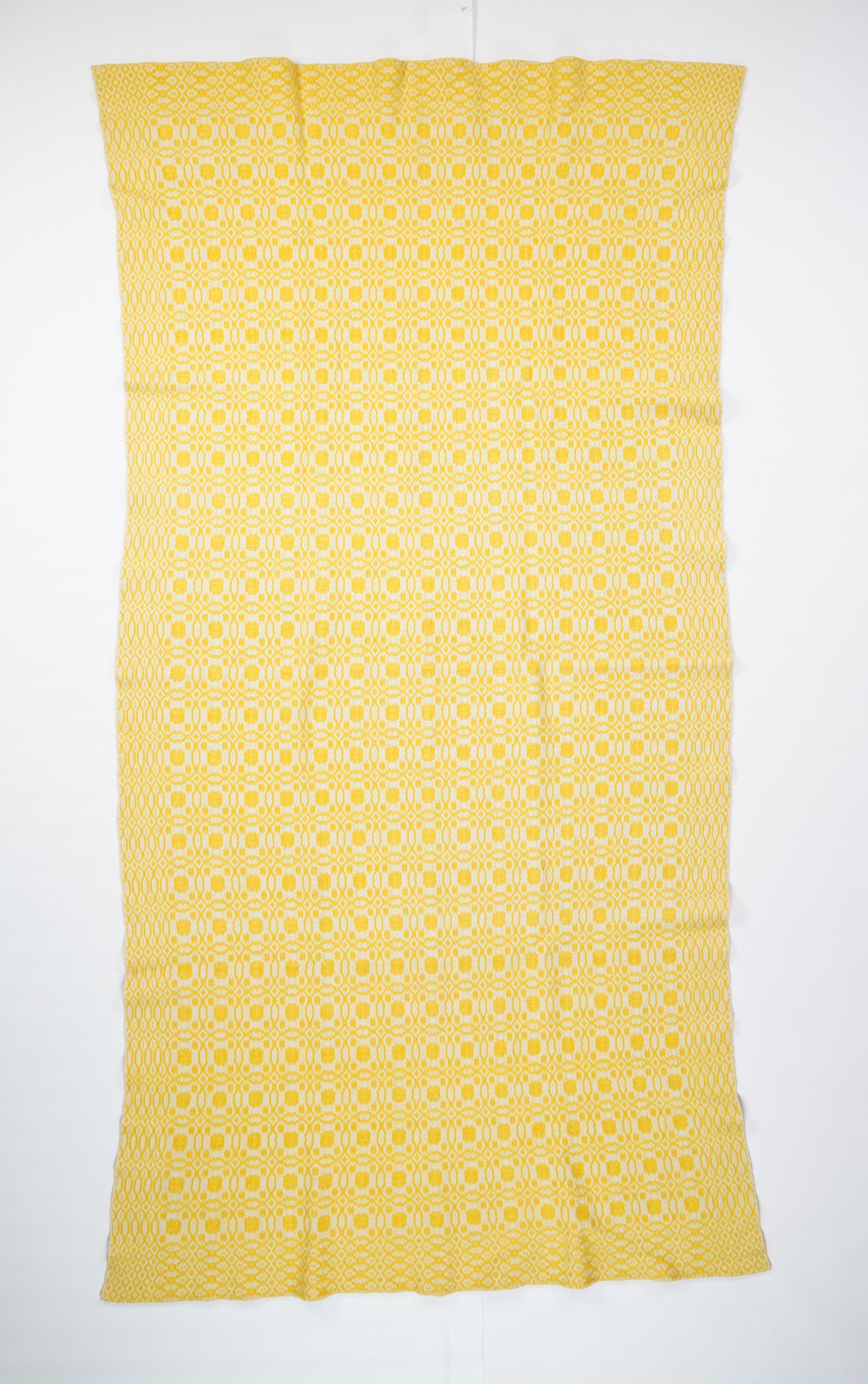Yellow and natural geometric overshot coverlet with border on four sides. Seamless.