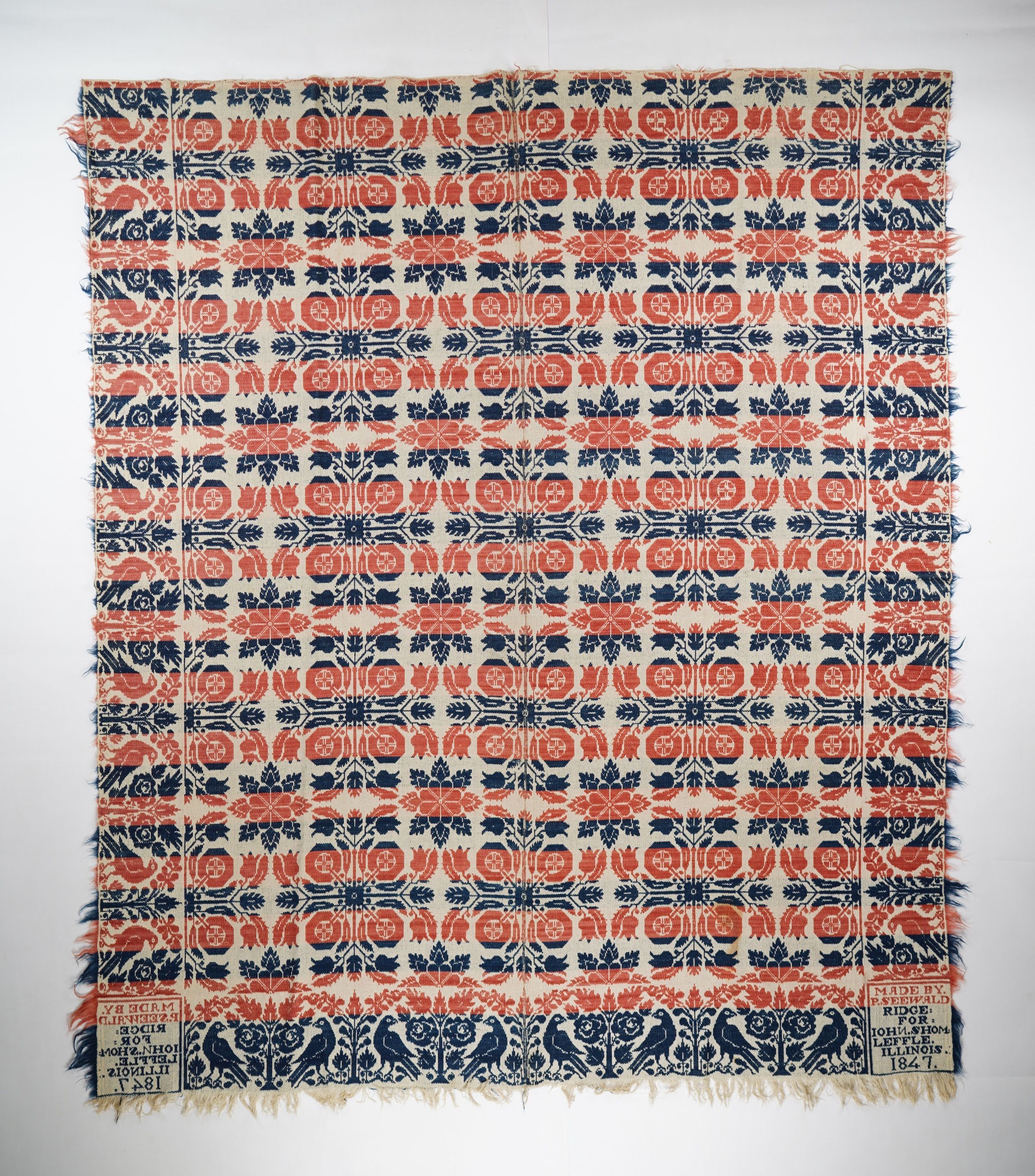 Illinois coverlet by Philip Seewald for John Shomleffle, 1847, tied beiderwandEntry/Object ID