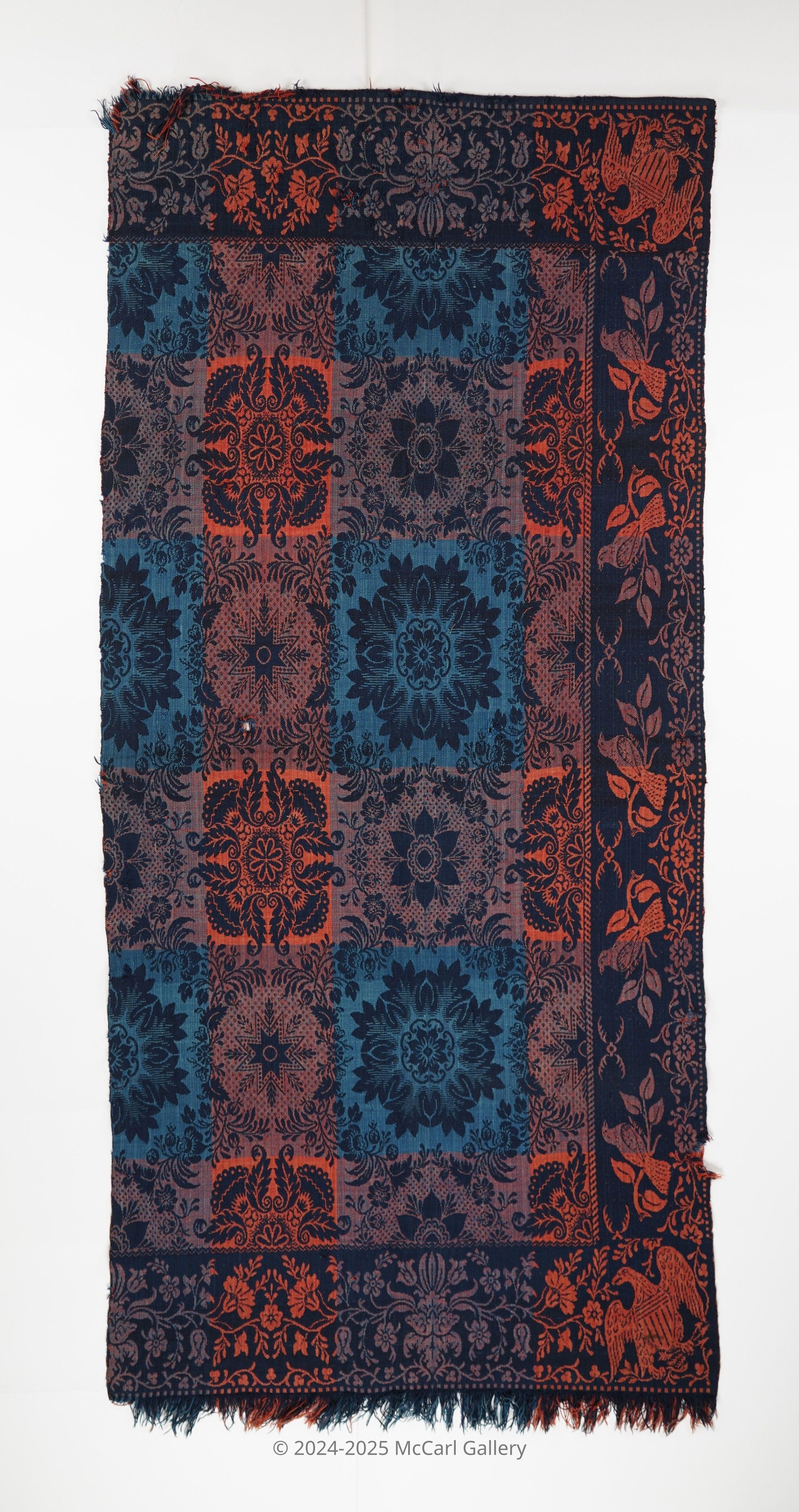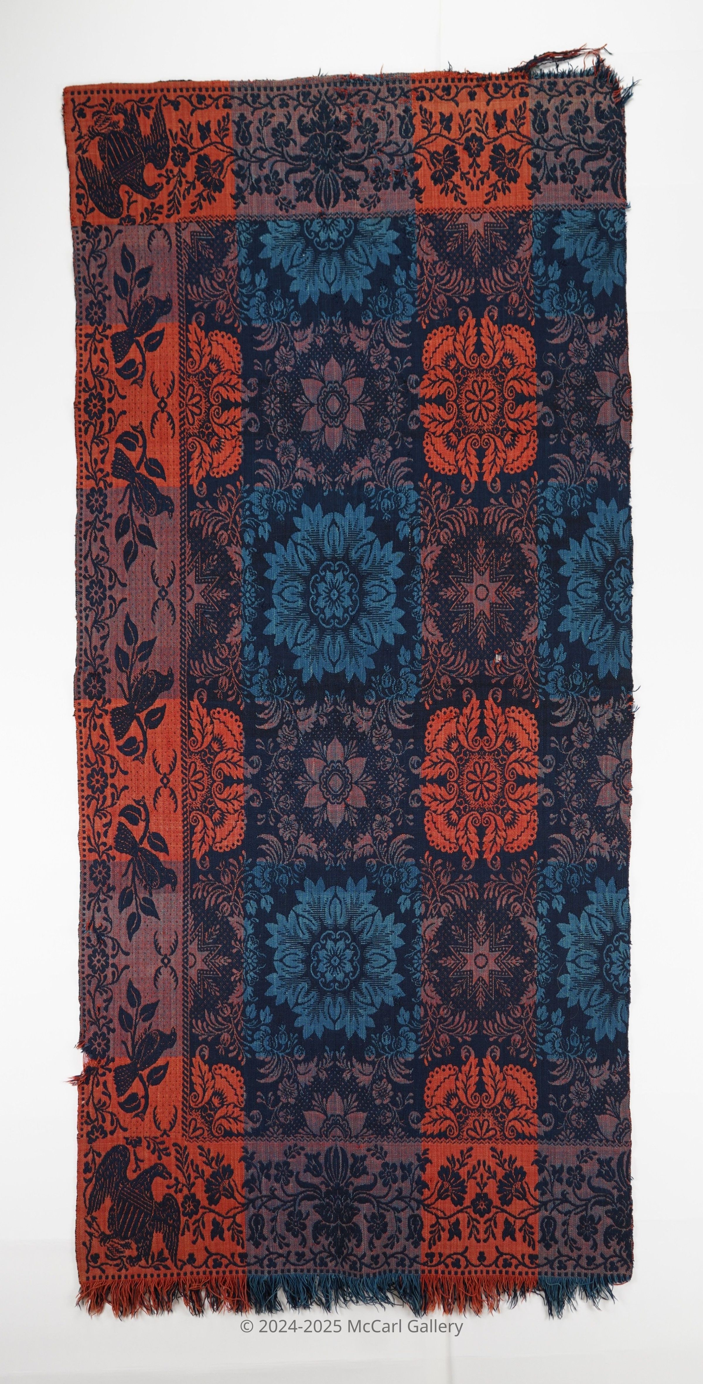 Red, navy, and light blue figured doubleweave coverlet panel attributed to Thomas Cranston of Jefferson/Switzerland County, Indiana.Made/Created