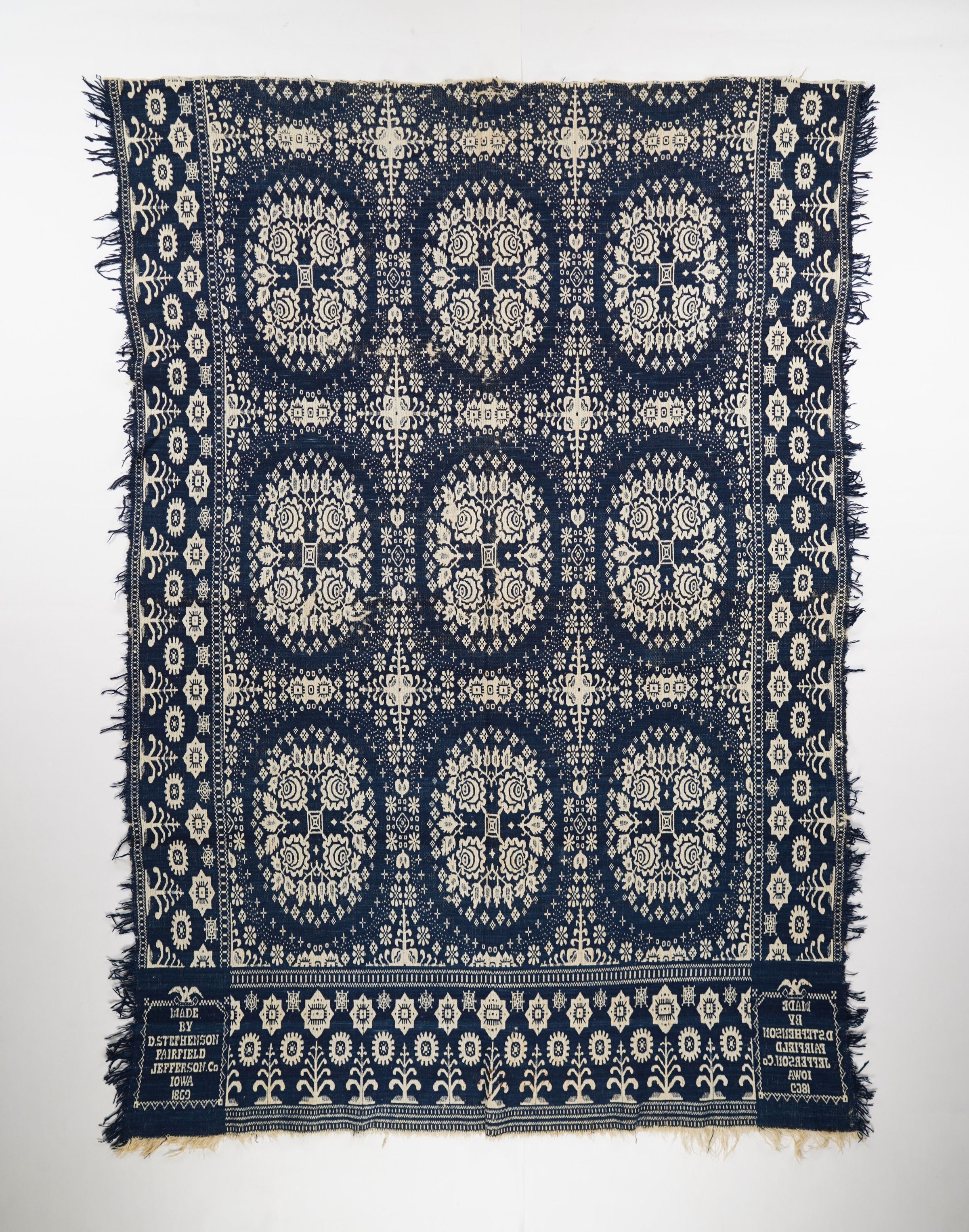 Iowa coverlet by Daniel Stephenson, 1869, tied beiderwandEntry/Object ID