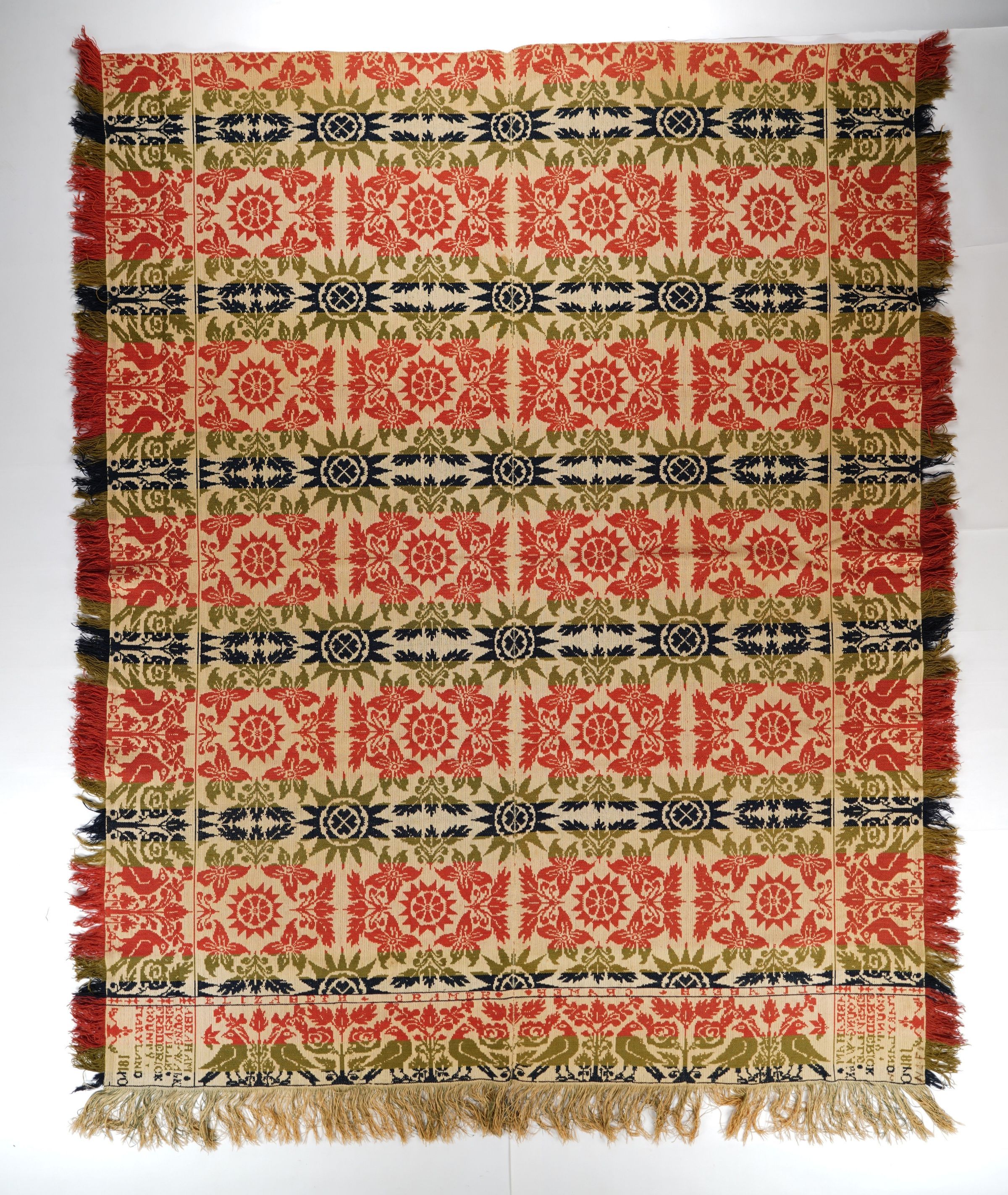 Maryland coverlet by Abraham Young for Elizabeth Cramer, 1840, tied beiderwandEntry/Object ID