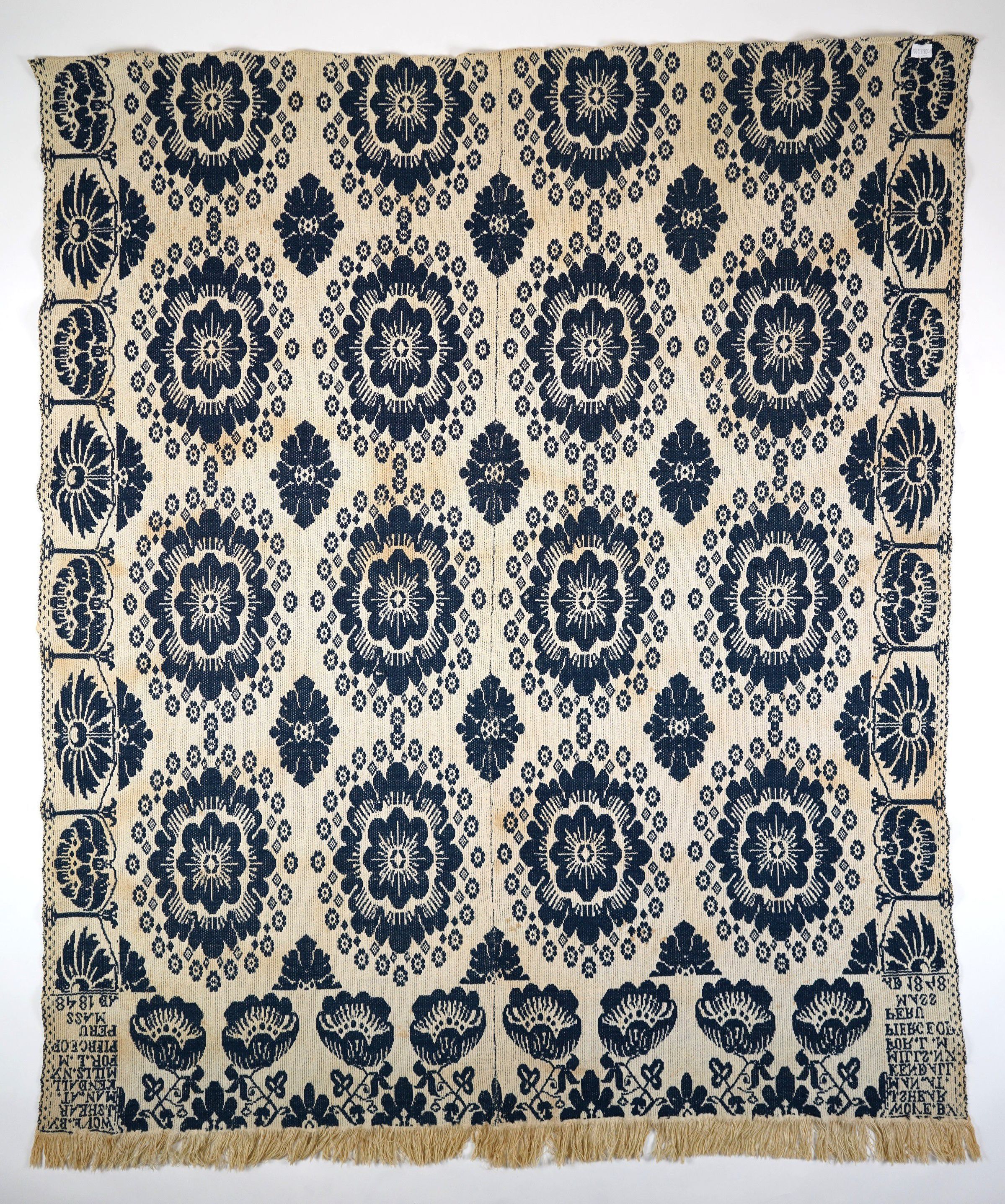 New York coverlet by Josiah Sherman, 1848, tied beiderwandEntry/Object ID
