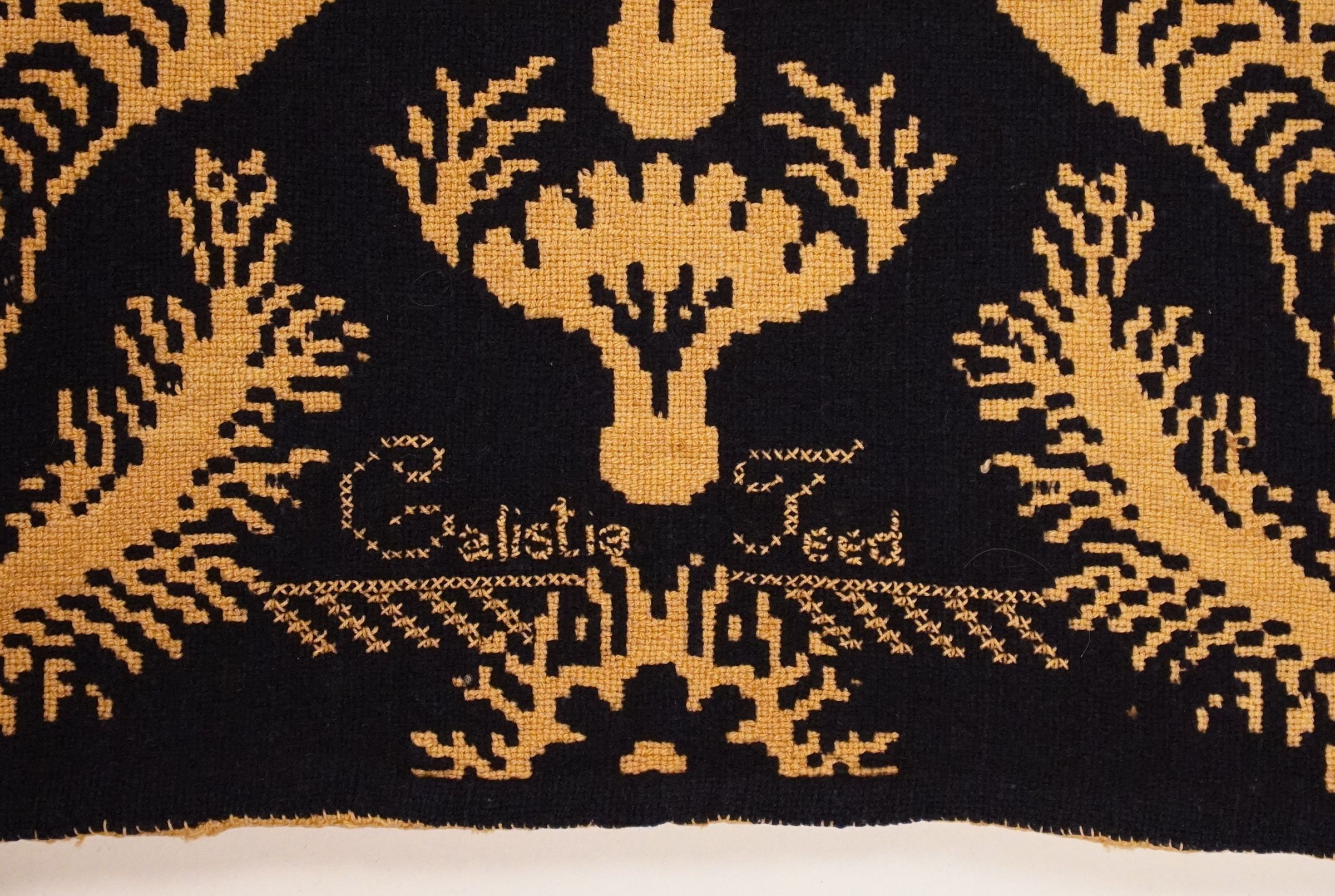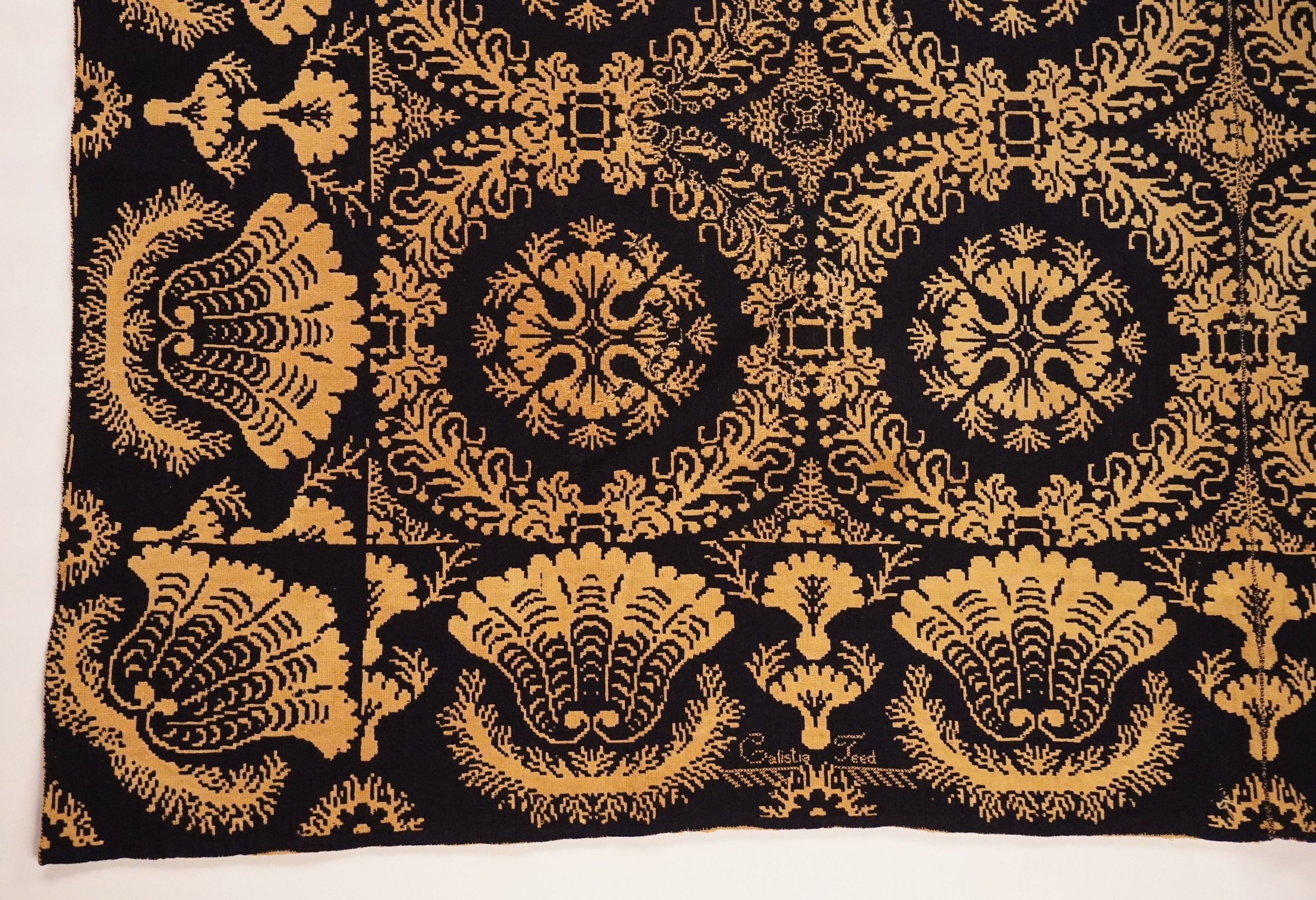 New York coverlet, doubleweave, embroidered "Calistia Teed"Entry/Object ID