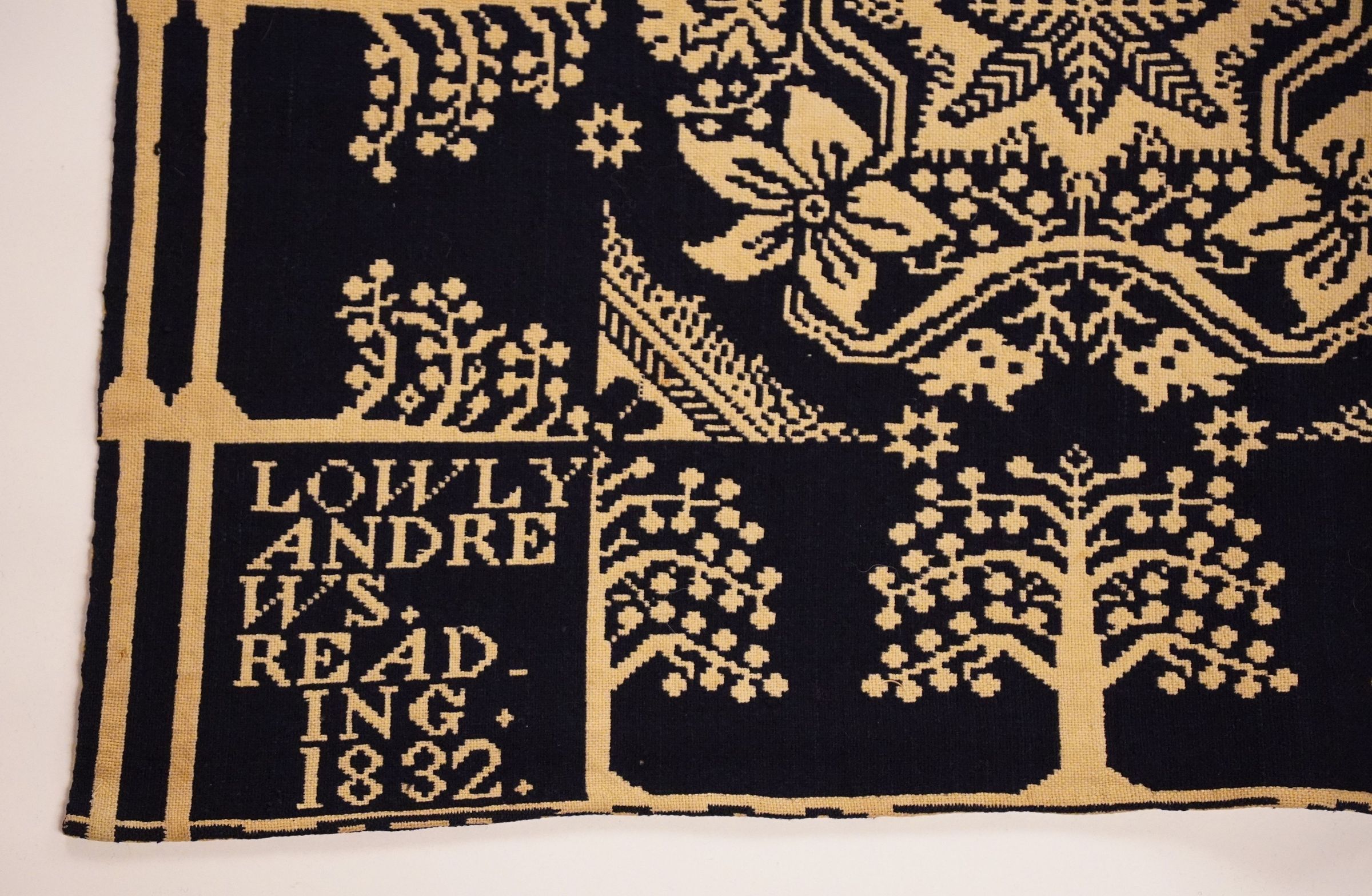 New York coverlet, doubleweave, woven in Reading in 1832 for Lowly AndrewsEntry/Object ID