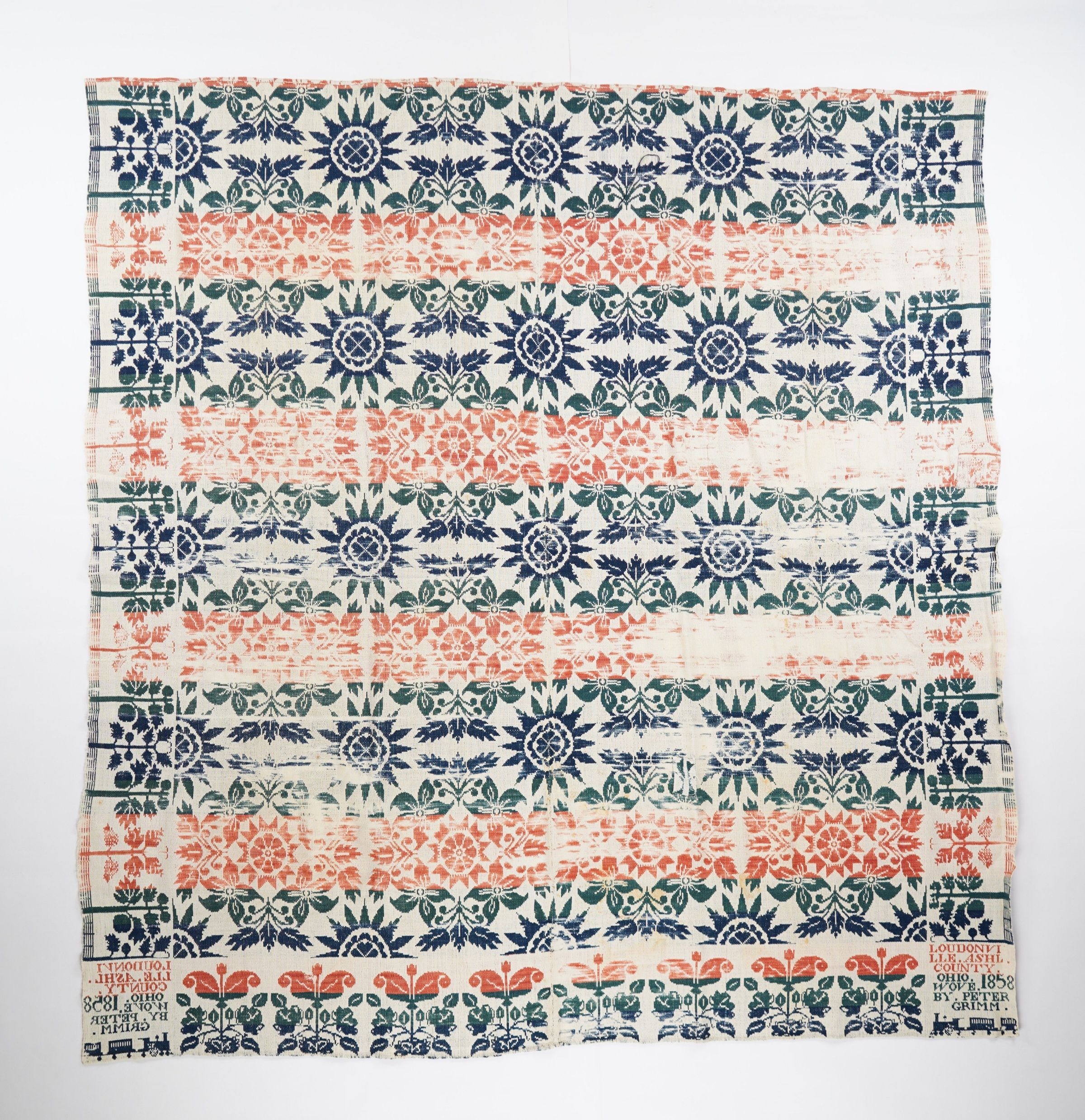 LOUDONVI/LLE.ASHL./COUNTY./ OHIO. 1858./ WOVE./ BY. PETER/ GRIMM.Material/Technique