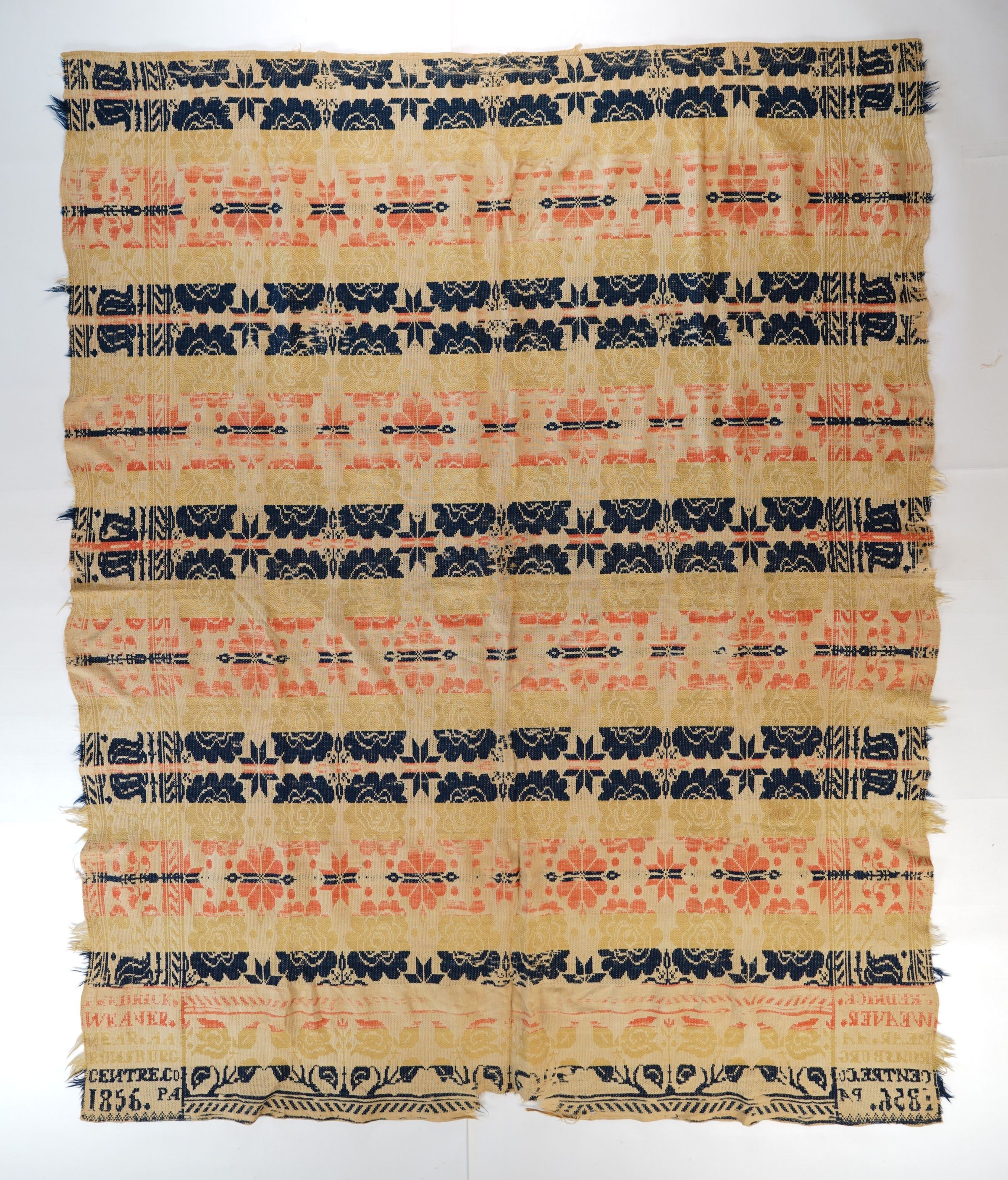 Pennsylvania coverlet by Frederick Weaver, 1856, tied beiderwandEntry/Object ID