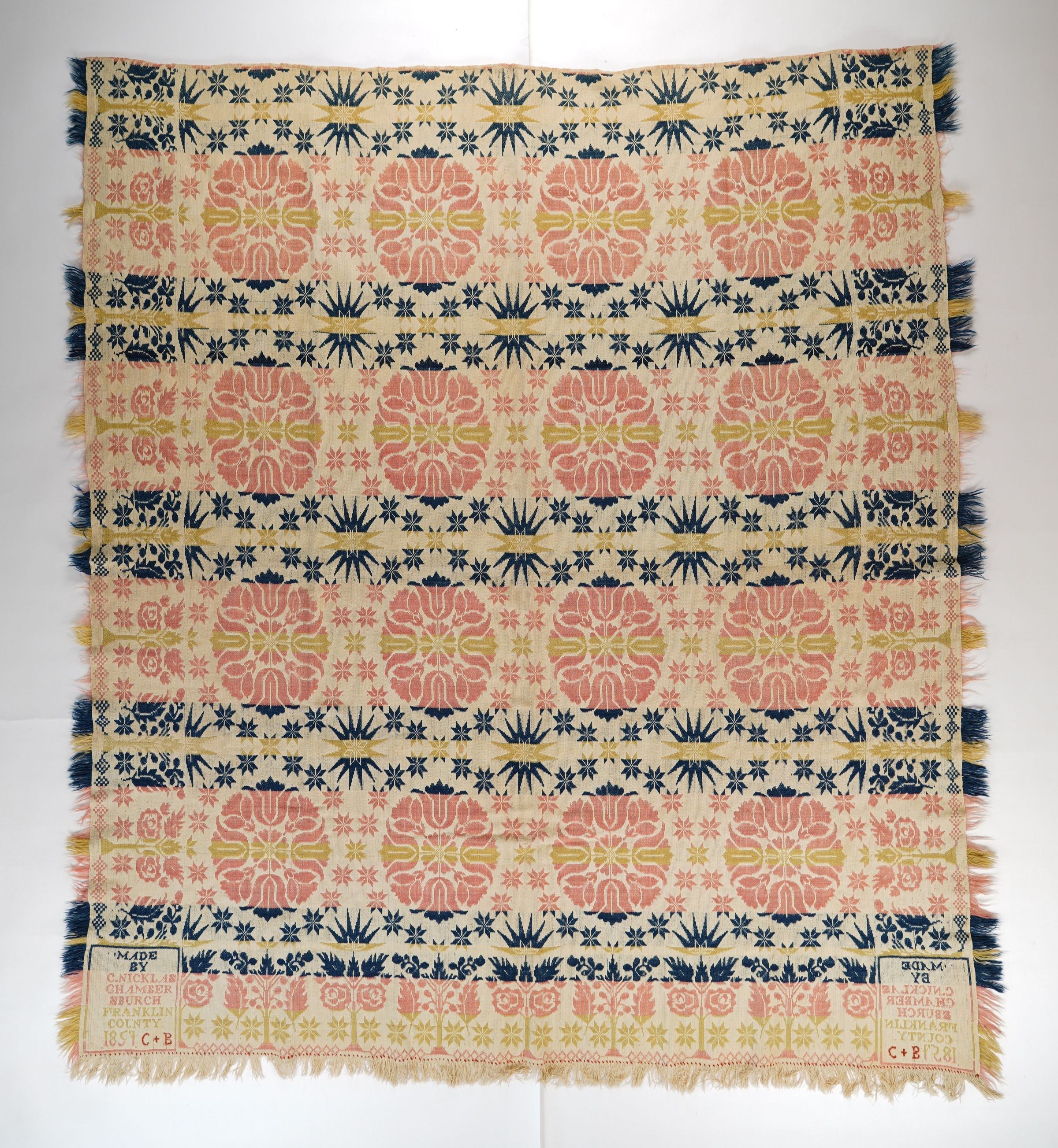 Pennsylvania coverlet by George Nicklas, 1854, beiderwand; "C+B"Entry/Object ID