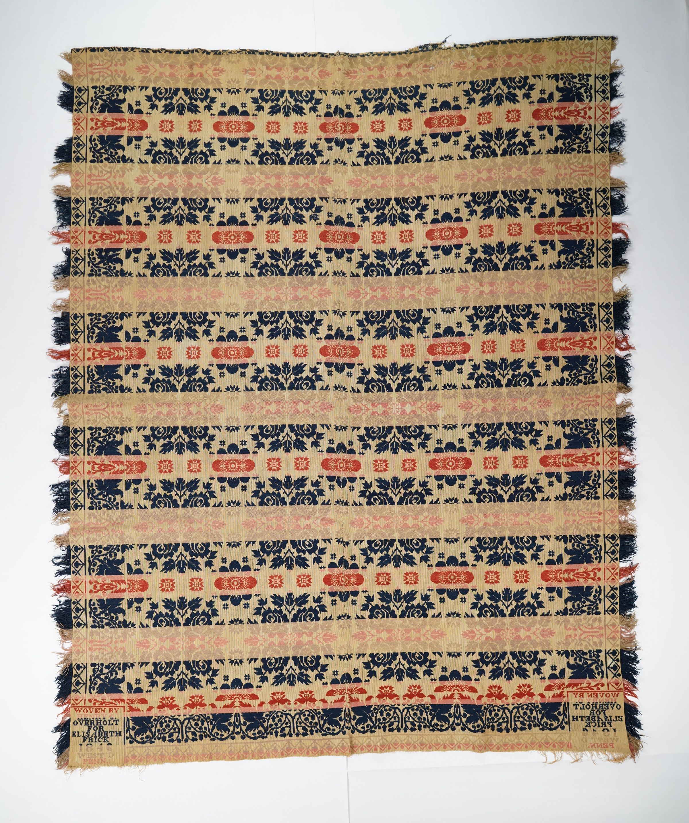 WOVEN BY / HENRY O. / OVERHOLT / FOR / ELISABETH / FRICK / 1846 / WEST'D / PENN.Material/Technique