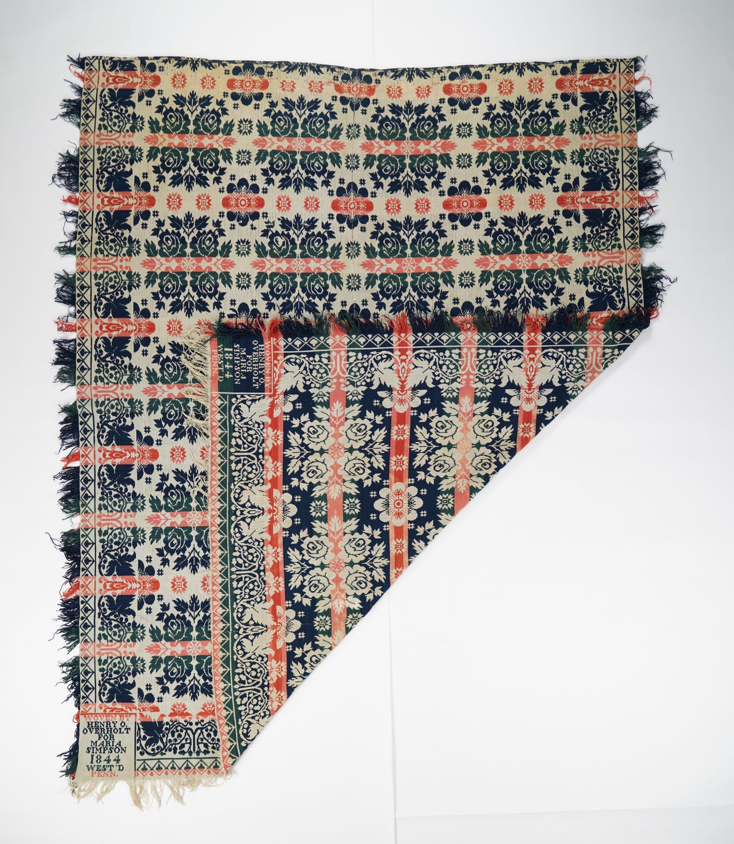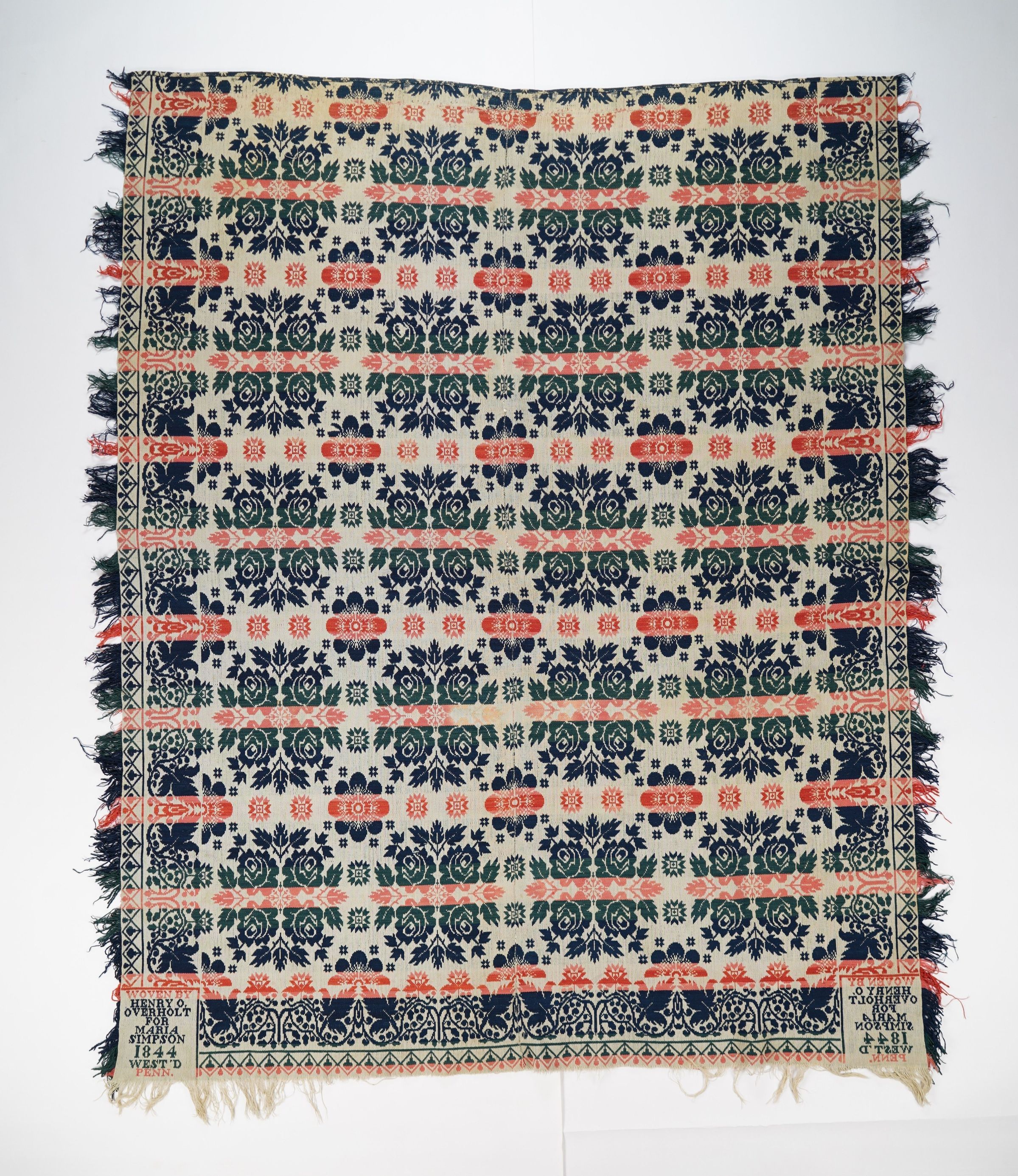 WOVEN BY / HENRY O. / OVERHOLT / FOR / MARIA / SIMPSON / 1844 / WEST'D / PENN.Material/Technique
