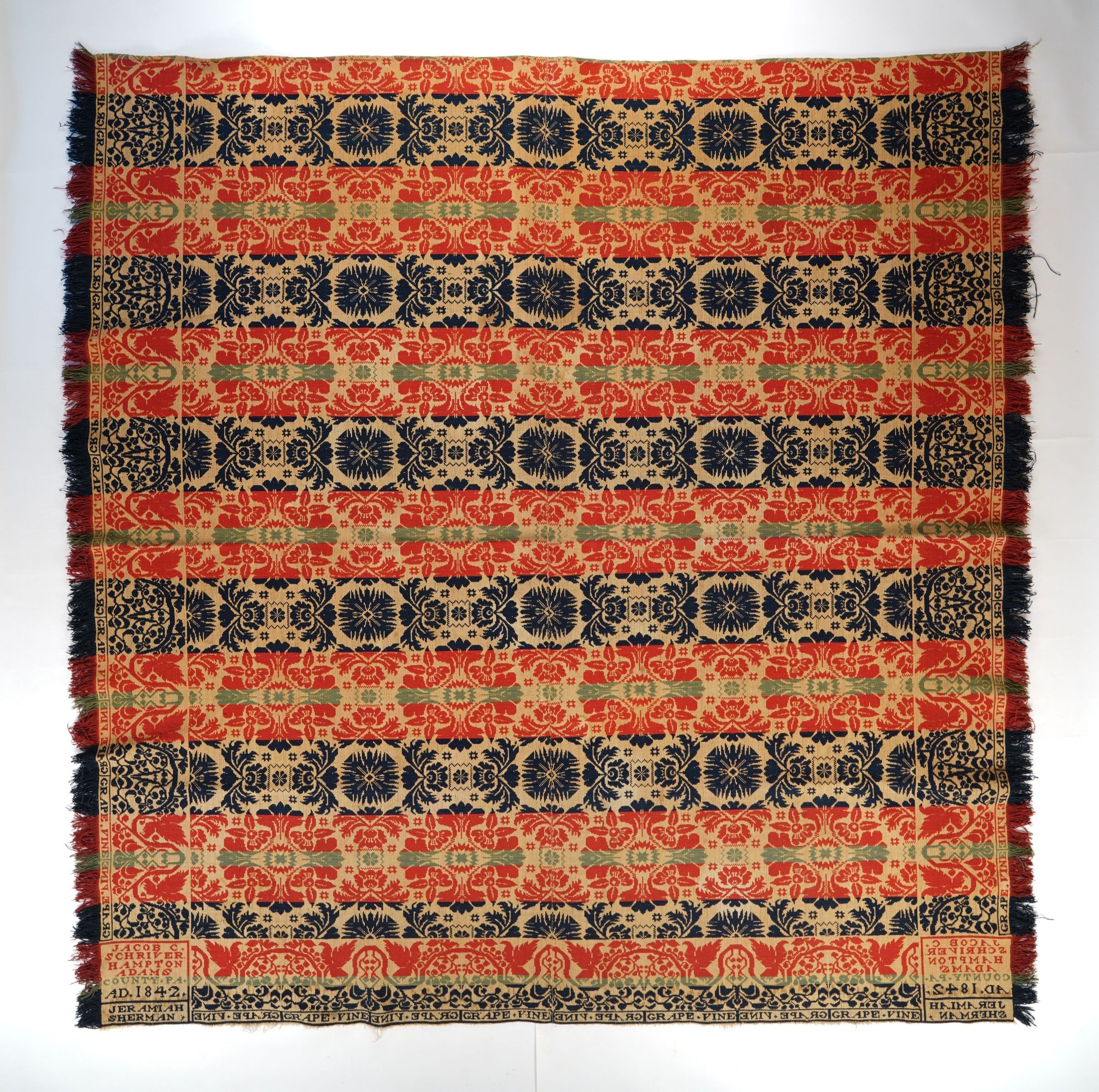 Pennsylvania coverlet by Jacob C. Schriver for Jeramiah Sherman, 1842, tied beiderwandEntry/Object ID