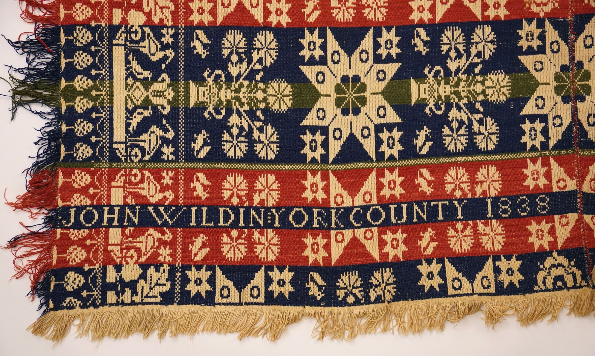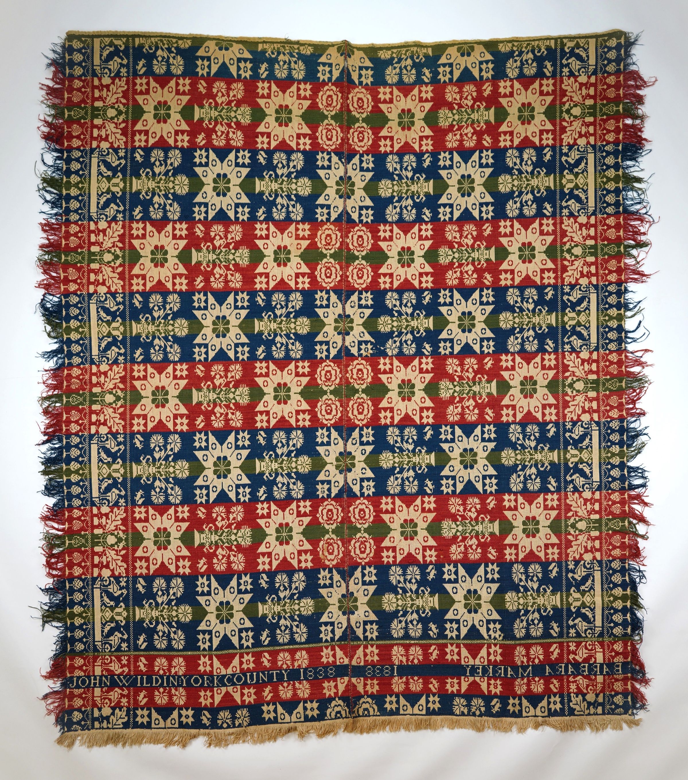 Pennsylvania coverlet by John Wildin for Barbara Markey, 1838, tied beiderwandDescription