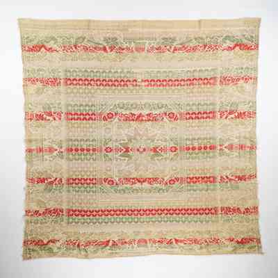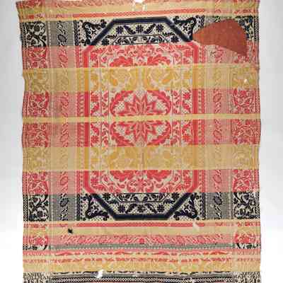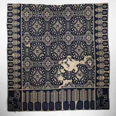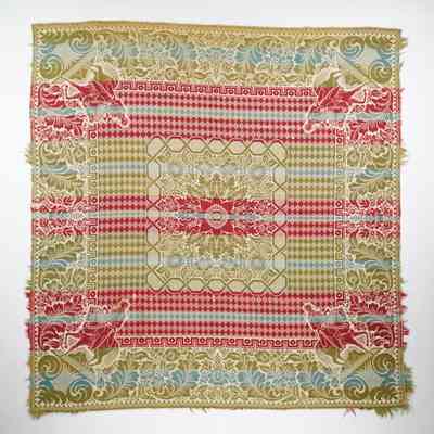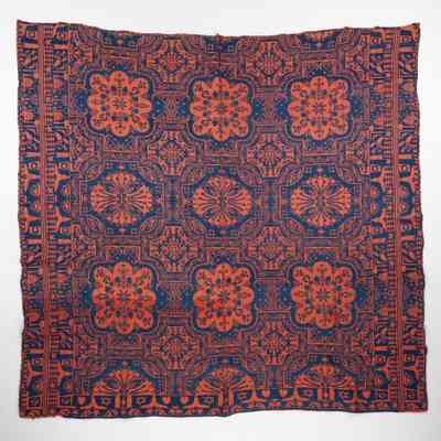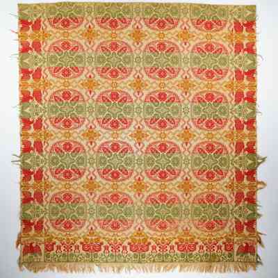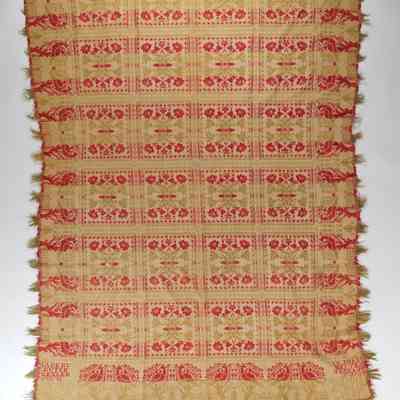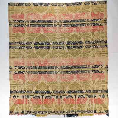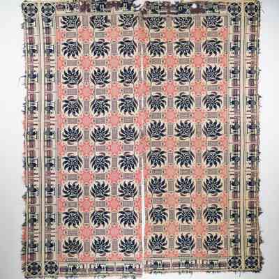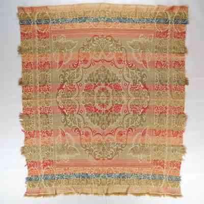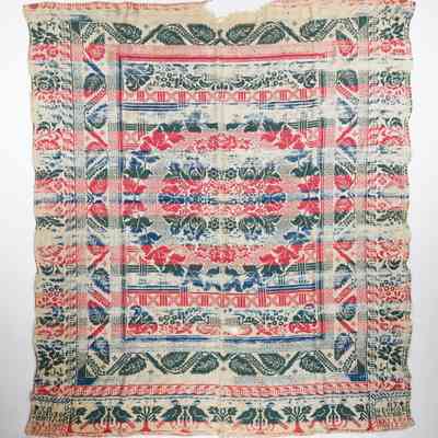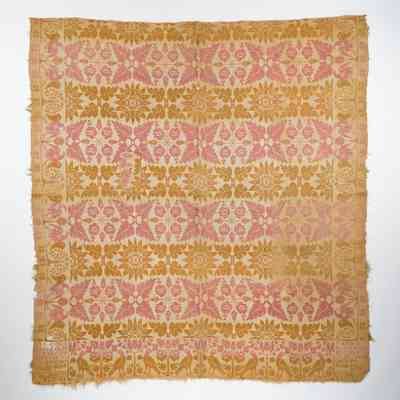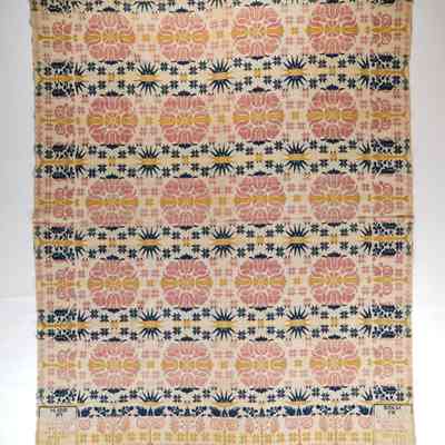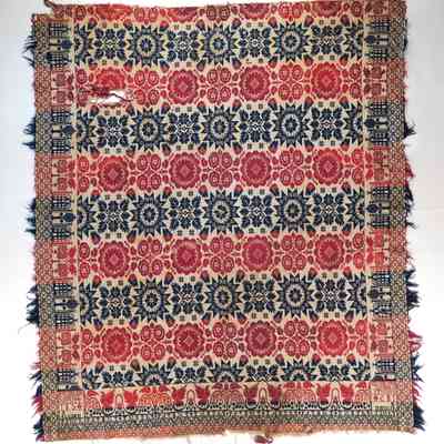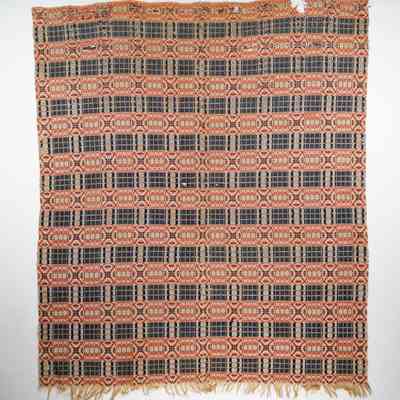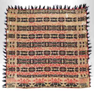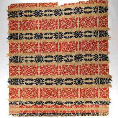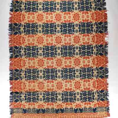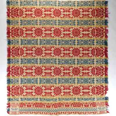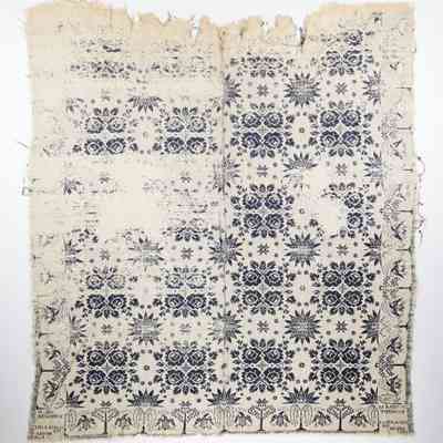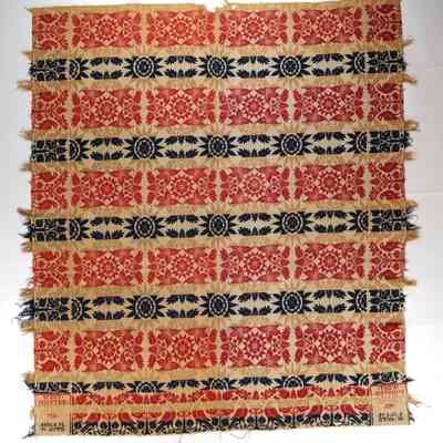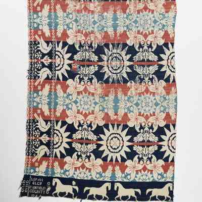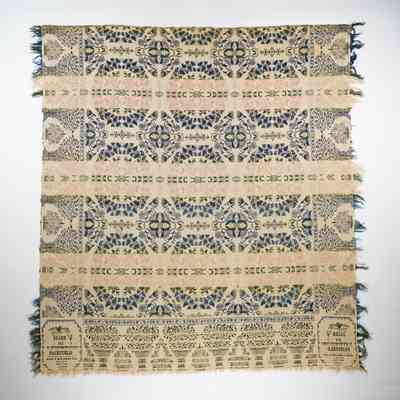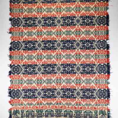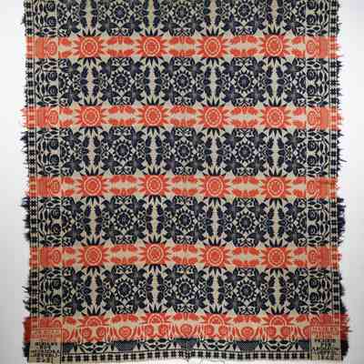 New York coverlet fragment, 1841, doubleweave; Olean Canal