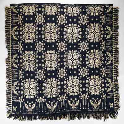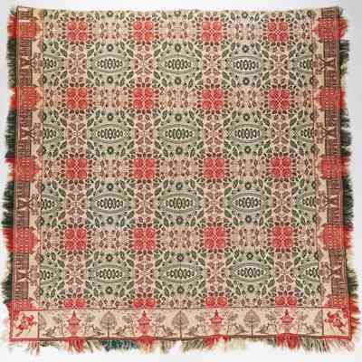 New York coverlet; Doubleweave; James Cunningham