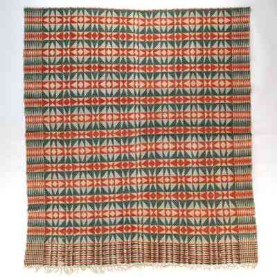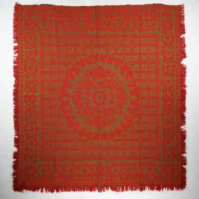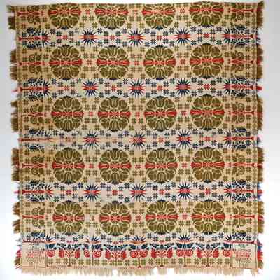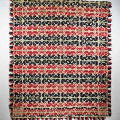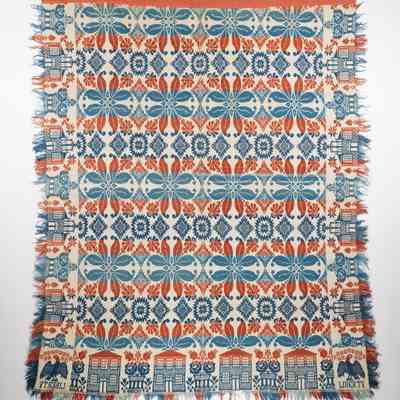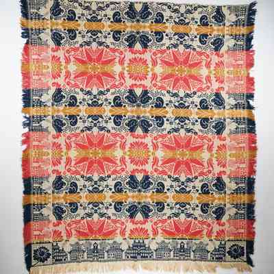 Power-woven coverlet, ca. 1876, doubleweave; "Memorial Hall"