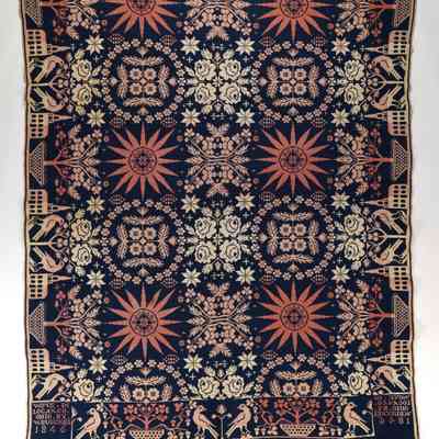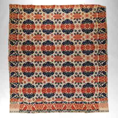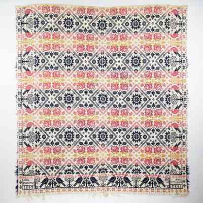 Indiana coverlet by John Rogers, 1849, doubleweave