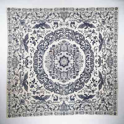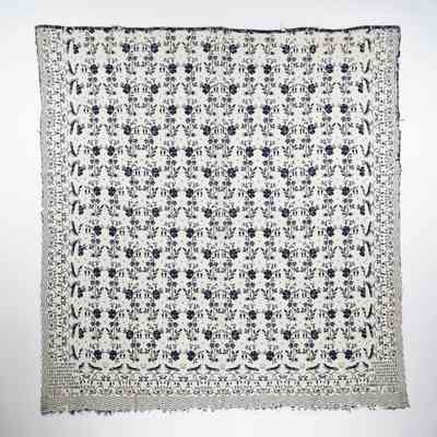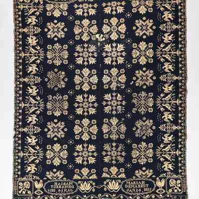 Geometric coverlet embroidered M.Z.B., 1827, summer and winter