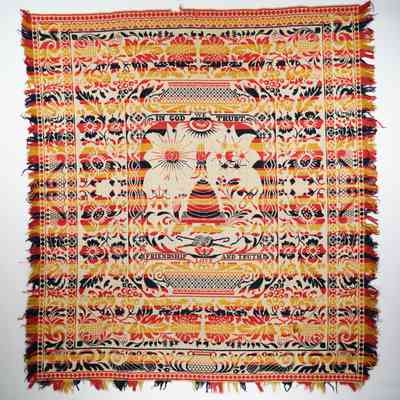New Hampshire coverlet by Hannah Leathers Wilson, 1833, weft-loop weave (Bolton)