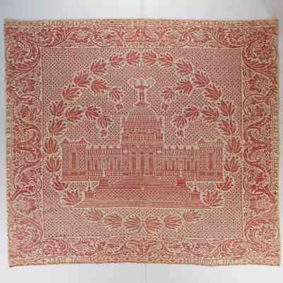 Coverlet, 1846, doubleweave; "capitol in Washington"