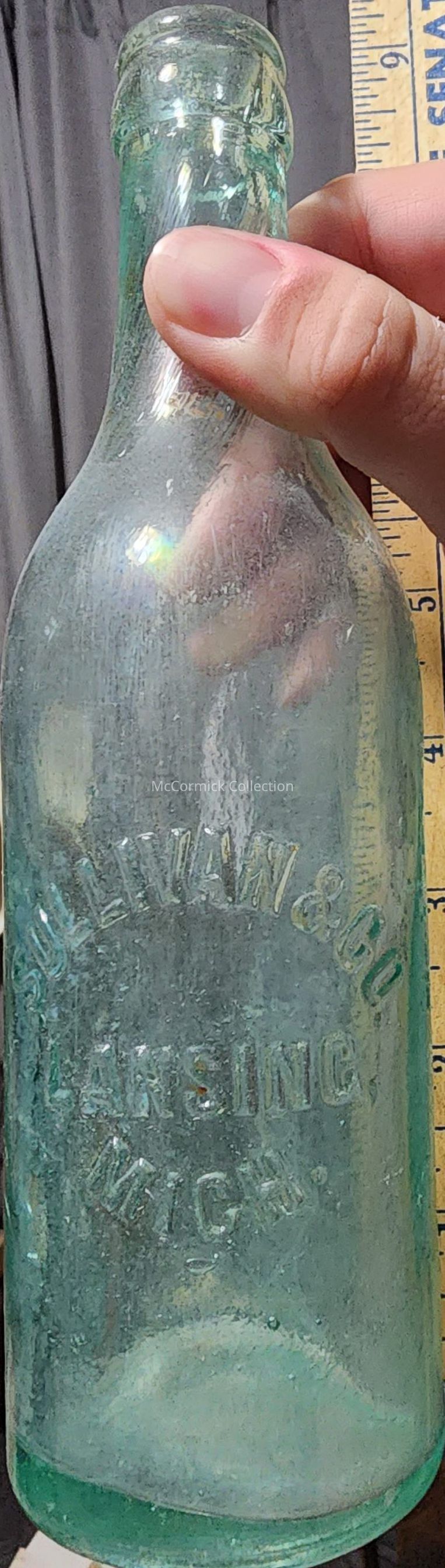 A blue/clear pop bottle from Sullivan & Co. of Lansing.